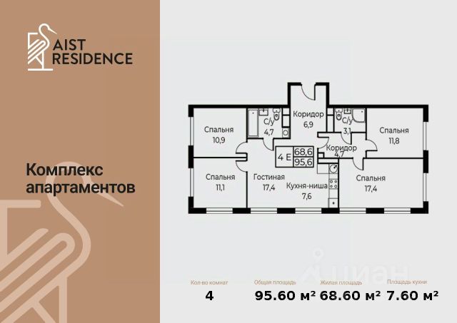 🔷 Площадь недвижимости: от 95,6 м² до 265,1 м²