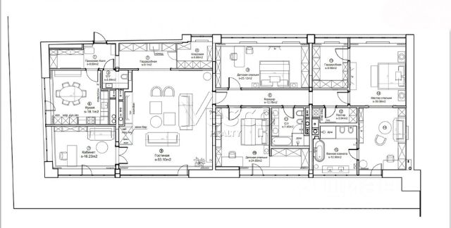 В историческом районе Хамовники продаются 5-к апартаменты площадью 239.60 кв.м, расположенные на 4 этаже делюкс-резиденции Саввинская 27. Преимущества: - 51 апартамент и 10 пентхаусов площадью 83-346 м2 с возможностью перепланировки и объединения; - все апартаменты с видом на Москву-реку; - бассейн 25 метров, тренажёрный зал, зал для занятий йогой и пилатесом; - бизнес-лаундж с отдельными переговорными; - детская комната с выходом во внутренний двор; - зимний сад; - библиотека с настоящим дровяным камином; - салон красоты и спа премиум-класса Mahash Spa; - подземный паркинг на 91 машино-место; - ресторан с летней террасой; - продуманное благоустройство на закрытой территории с охраной и видеонаблюдением, с детской площадкой и местом для тихого отдыха. Расположение и инфраструктура: Дом построен именно в Хамовниках неслучайно, ведь это стиль жизни, к которому вы привыкли: лучшие школы, спортивные секции, места для отдыха, прогулок и комфортная логистика до исторического центра или Москва-Сити. - 2 минуты до Садового кольца и 6 минут до ТТК на машине; - 11 минут пешком до "Лужники"; - 20 минут пешком до станции метро "Спортивная"; - в окружении более 15 детских садов, в том числе 9 частных; - в пешей доступности расположены 11 школ, 4 из которых входят в топ-20 школ Москвы по версии Forbes; - в окружении 5 парков, в том числе парк "Новодевичьи пруды", усадьба Трубецких, парк Горького. Отличная транспортная доступность: Еще одно преимущество резиденции - удобная транспортная доступность. Несмотря на близость к центру, путь на автомобиле до ТТК займет 2 минуты, до Садового кольца 5 минут. В пешей доступности находятся три станции метро: Спортивная, Фрунзенская и МЦК Лужники.