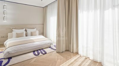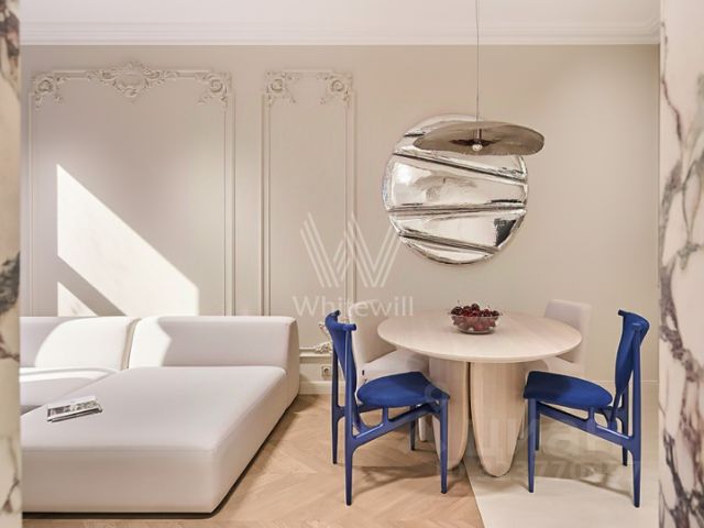 Просторная квартира с тремя спальнями в комплексе премиум-класса Prime Park. Квартира площадью 138 м² расположена на двадцать пятом этаже в корпусе R-6. Интерьер оформлен в современном стиле по индивидуальному проекту. На полу выложена инженерная доска Kahrs, покрытие стен и потолков под микроцемент Travertino, керамогранит от Porcelanosa, керамика — Atlas Plan. Квартира полностью укомплектована бытовой премиальной техникой Miele, Kuppersbusch, LG, мягкой мебелью Vankov, Boca Room, PlaceFreedom, Dan Form, B&B italia. Сантехника представлена брендами: Gessi, AXOR, Hansgrohe, Omoikiri, TOTO, Villeroy&Boch.