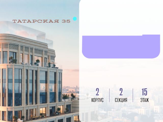 Продается просторная квартира площадью 211.10 м2 в жилом комплексе ТАТАРСКАЯ, 35. Квартира находится в 1 секции корпуса 1. Этаж 13-й из 20. Квартира без чистовой отделки, с просторной кухней 50.40 м2. Жилая площадь 84.60 м2. Высота потолка от 3.50. ТАТАРСКАЯ, 35 - новая архитектурная доминанта Замоскворечья, достопримечательность на фотопанорамах исторического центра Москвы. Элитный дом, созданный для тех, кто умеет смотреть далеко вперед, мыслить масштабно и воплощать собственный сценарий жизни. Вдохновляющие прогулки по променаду набережной, в уютных переулках, в парке "Зарядье", в Михайловском саду и Репинском сквере. Наслаждение высоким искусством в Третьяковской галерее, Доме Музыки, театральном музее им. А.А. Бахрушина, театре на Малой Ордынке. За окнами - Кремль, высотка на Котельнической, панорамы Замоскворечья и острова Балчуг, огни Садового кольца. Собственные спорт-румы, детская, репетиторская, бьюти-пространства, деловое пространство с коворкингом, переговорной и сигарной. Собственный трехуровневый фитнесс-центр с бассейном, тренажерным залом, сауной, хаммамом, массажным кабинетом. Площадь двора - 1,8 га, половина территории покрыта деревьями, кустарниками и лужайками. Дом расположен внутри Садового кольца - отсюда в считанные минуты можно добраться до важнейших мест столицы: достопримечательностей и парков, театров и ресторанов, деловых и административных центров. 7 минут до Кремля на автомобиле, 15 минут до Третьяковской галереи и 8 минут до Садового кольца пешком. Планировочные решения и визуализации предварительны, возможны изменения.