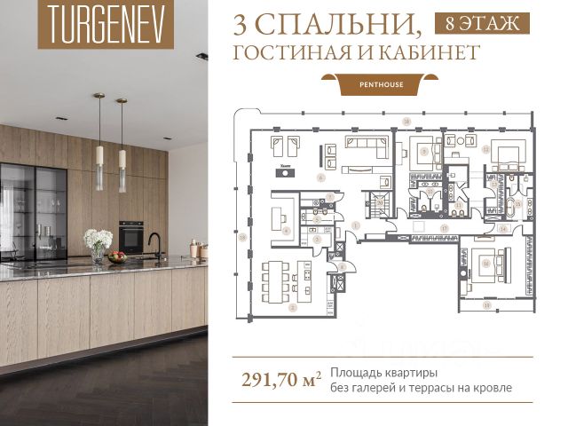- 3 мастер-спальни с индивидуальными санузлами и гардеробными,