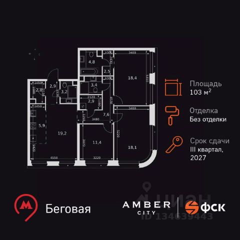 Цена указана с учётом скидки при 100%-й оплате, несубсидированной ипотеке, рассрочке (кроме программы "Рассрочка 0%"). В жилом квартале продаётся многокомнатная квартира площадью 121.70 кв.м white box. Квартира расположена на 48 этаже 48 этажного корпуса 1 в жилом комплексе комфорт класса Level Звенигородская (компания Level Group/Левел групп). Отличная транспортная доступность - 5 мин. пешком до метро "Звенигородская" (откроется к окончанию строительства); - 18 мин. пешком до станции МЦК "Хорошёво" и станции БКЛ "Народное ополчение"; - 4 мин. на авто до ТТК; - 8 мин. на авто до Садового кольца; - 15 мин. на авто до Кремля. Продуманный архитектурный проект - Концепция от студии Станислава Михаловского, в основу которой легло единение природы и города; - Двухкамерные стеклопакеты в окнах, алюминиевый и ПВХ профиль - в квартирах тепло зимой и прохладно летом; - С верхних этажей откроются панорамные виды на город, Москву-реку, "Москва-Сити" и Москворецкий парк; - Лобби со всеми удобствами: окна в пол, высокие потолки до 4,7 м, лаунж-зоны, колясочные, гостевые санузлы и мойки для лап животных; - Централизованные водонагреватели гарантируют круглогодичную подачу горячей воды в каждую квартиру. Благоустройство Концепция благоустройства разработана совместно с бюро UNK landscape. Высота башен приближается к 200 метрам - они словно касаются неба. Небесный простор проецируется на территорию двора с помощью подсветки, визуально увеличивая пространство и отражаясь в авторских элементах архитектуры. На территории площадью 0,45 га расположатся: - "Облако событий" - место встреч и общения; - "Облако спорта" - всё для поддержания себя в форме; - "Облако принятия решений" - пространство для работы на свежем воздухе; - "Облако спокойствия" - для отдыха в тишине природы; - "Облако игр" - площадки для подростков и самых маленьких. Инфраструктура В жилом комплексе откроется 21 коммерческое помещение: продуктовые лавки, кафе, салоны красоты, службы доставки и творческие студии. Этап 1 включает строительство двухуровневого подземного паркинга. Всего здесь расположится 351 машино-место, включая семейные места, и 264 кладовых помещения. В распоряжении жителей развитая инфраструктура района: 15 супермаркетов, 5 спортивных объектов, 9 медучреждений, 7 детских садов, 4 школы, 3 благоустроенных парка - всё в шаговой доступности. Инженерия Комфортное перемещение внутри домов будут обеспечивать надёжные лифты с доступом в паркинг с жилых этажей. В каждом корпусе предусмотрено до шести кабин, включая сервисные лифты. Попасть на территорию комплекса можно только по единому ключу доступа. Видеонаблюдение установлено на входах в подъезды, в лобби, в общих зонах, на въезде в паркинг. Гости смогут связаться с жителями дома через входные видеопанели, а управлять доступом на территорию можно через видеодомофон или приложение на телефоне.