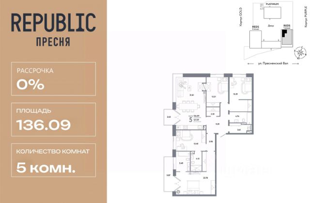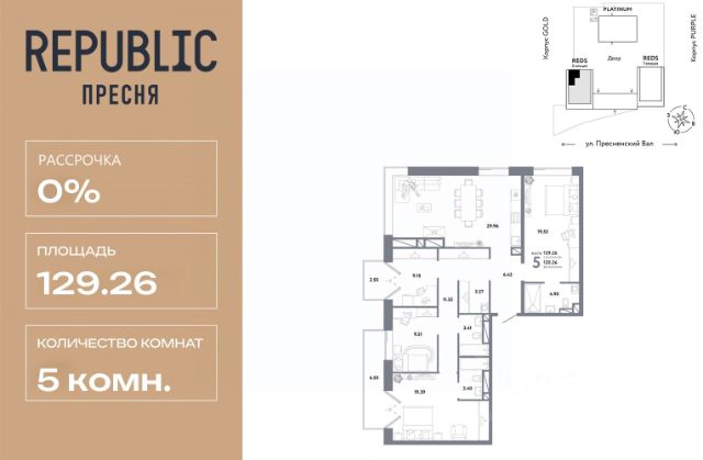 Новая квартира в ЖК "Republic" напрямую от федерального застройщика "Страна Девелопмент". Продается 5комнатная квартира на 26 этаже от застройщика Страна Девелопмент. Площадь квартиры 140,49 кв. м. Дизайн-квартал "Republic" — новый проект премиум-класса в Москве. 10 жилых башен и 4 восстановленных здания локомотивного депо образуют уникальное пространство. "Republic" — место, где вы ощутите гармонию истории и современности. Детский сад, SPA-комплекс с бассейном, гастрономический и шопинг-центры, собственный бульвар и яркие арт-пространства — для жителей предусмотрены все элементы премиального комфорта. Преимущества Уникальная жизненная среда, где инфраструктура включает гастрономию, SPA-комплекс с термами, образовательные и развлекательные заведения, арт-пространство и шопинг-аллеи. Двор от британского бюро "Gillespies": на 4 гектарах закрытого двора расположится 7 игровых зон для разных возрастов с ручьем и сухим фонтаном, арт-галерея под открытым небом и большой прогулочный бульвар. Лобби с террасой в башнях "Reds" — лаконичное пространство галереи-лобби, где можно проводить деловые и дружеские встречи, не нарушая приватности квартиры. В тёплое время года не остаётся пустующей терраса на крыше, которая привлекает непринуждённой атмосферой и прохладительными напитками в баре. Клубная гостиная — стильное пространство оборудовано кухней и залом для торжеств на 40 человек, а для того, чтобы побыть наедине с собой, почитать книгу или провести онлайн-встречу в гостиной оборудована мастерская с библиотекой. Уникальные форматы квартир, где можно реализовать любой жизненный сценарий: от стильного офиса в двухэтажной квартире до угловых лотов с просторными гостиными. А эксклюзивные пентхаусы с высокими потолками и панорамными окнами дарят захватывающие виды на Москву.. Отделка Квартиры сдаются без отделки или в формате White box. При отделке White box уже были выполнены все шумные и грязные работы руками наших специалистов: произведена разводка электричества с установкой подрозетников, установлены откосы из гипсокартона, устроена стяжка пола с шумоизоляцией. Способы покупки Сотрудники "Страна Девелопмент" будут сопровождать вас на каждом этапе сделки, помогут получить одобрение по ипотеке или снизить ежемесячный платеж. - ипотека - рассрочка - с использованием материнского капитала - 100% оплата наличными Продам 5-комнатную квартиру с евроремонтом рядом с метро Белорусская.