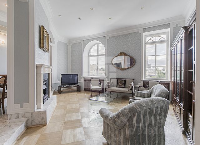 Эксклюзив. Предлагаем великолепную 5-ти комнатную квартиру на 4 этаже знаменитого дома. В квартире был сделан очень качественный капитальный ремонт в стиле классицизма с использованием материалов премиум класса, с заменой перекрытий, всех инженерных систем и коммуникаций. Отделка квартиры сочетает в себе элегантность и функциональность. Двери из массива дуба, шикарные окна с тройными стеклопакетами, итальянская мебель, дизайнерские люстры, декоративный камин, облицованный мрамором, теплые полы. Узаконена замена газовой плиты на электрическую, выкуплена мощность 380 кВт, за счет чего снижен тариф на электроэнергию. В квартиру два входа центральный со стороны лестницы и " черный", со стороны лифта. Толщина стен-90 см. Потолки 3,2 м. Планировка включает в себя гостиную с обеденной зоной 26,2 кв. м и зоной отдыха 19, 6 кв. м; мастер-спальню с санузлом 19,4 кв.м; спальню 12,7 кв.м , кабинет 12кв.м, гостевой санузел, просторную прихожую и кухню-13,4 кв.м. Окна в спальнях выходят в тихий двор. Вход в подъезд возможен как с улицы, так и со стороны двора, где расположена наземная парковка для жильцов дома. Все в этой квартире продумано до мелочей, создающих атмосферу уюта и комфорта. Эта квартира идеально подойдет тем, кто ценит жизнь в сердце столицы 5-комнатной квартиры с евроремонтом на улице Арбат в Москве.