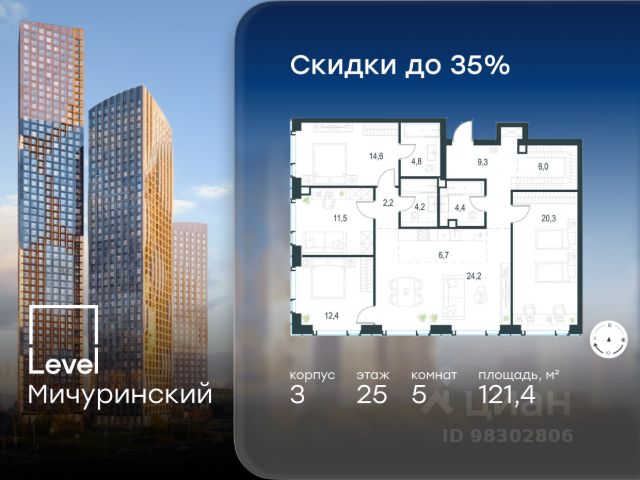 В жилом кластере Родина Парк рядом с природным заказником Долина реки Сетунь продаётся 5-комнатная квартира. Продуманная европланировка, которую легко зонировать под ваши запросы. Потолки от 3,1 м. "Родина Парк" — премиальный семейный кластер с образовательным медиакластером, строящийся на западе Москвы в окружении природного заповедника "Долина реки Сетуни". • Скидки недели на избранный пул лотов • Рассрочка 0% на выгодных условиях до 2 лет • Семейная ипотека, подбор комбо-вариантов ипотечных программ прямо в офисе продаж • Скидки 8% при 100% оплате или ипотеке. ЛОКАЦИЯ: 8 минут пешком до станции БКЛ "Давыдково". 12 минут на автомобиле до Нового Арбата. Удобные выезды на Кутузовский проспект, Аминьевское шоссе. ИНФРАСТРУКТУРА И СЕРВИСЫ ДЛЯ ЖИТЕЛЕЙ - Уникальная экосистема для развития, здоровья и творчества на территории 3,5 Га: - Первый в России образовательный медиакластер (с участием Русской медиагруппы) для творческого развития детей и взрослых с возможностью получить востребованную профессию в сфере шоу-бизнеса. - Инфраструктура и сервисы для семей с детьми на территории жилого кластера (частный детский сад, детские игровые пространства, творческие студии для занятий музыкой и танцами, безопасная и комфортная среда для детей и родителей), событийно-культурная площадка для проведения семейного досуга); - Здоровая среда (биохакинг-центр, фитнес-зал и спортивная инфраструктура во дворе, медитационные пространства, инженерные решения для освещения, свежего воздуха и очистки воды, сервисы красоты и поддержания активного долголетия); - Сервисы заботы (инфраструктура комфорта - подземный паркинг, кладовые, колясочные, консьерж- сервис, умный дом, мобильное приложение, профессиональная управляющая компания, сервисы охраны и обеспечение абсолютной безопасности) - Комьюнити резидентов (социальные пространства для дружеского и делового общения - летний атриум с уличным кинотеатром, зоны отдыха, кафе и рестораны, комьюнити-сервис с культурно- событийной программой в медиакластере); - Модуль благосостояния (комфортные пространства для работы и саморазвития - коворкинги и переговорные). ИНФРАСТРУКТУРА РАЙОНА: Насыщенная образовательная среда: филиалы МГИМО, МГУ, МГТУ, Сколково. Топовые школы: 6 лучших частных школ Москвы и области (Forbes) в 10 минутах езды. Природное окружение для пеших прогулок, спорта и отдыха. "Родина Парк" — это место, где растут и дети, и ваши возможности. Экосистема, где всё подчинено развитию — физически, профессионально, творчески.