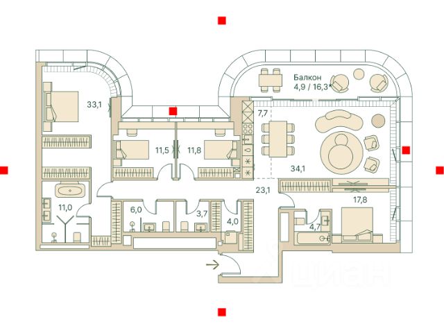 Пятикомнатная велнес-резиденция площадью 171.4 кв. м. на 11 этаже с видом на Рублёвское шоссе и парк в доме премиум-класса Springs. В квартире выполнена чистовая дизайнерская отделка. Резиденция наполнена светом и воздухом, благодаря панорамному остеклению и высоким потолкам. На первом этаже дома расположены: - фитнес-центр с бассейном; - СПА с хаммамом; - бьюти-зона с массажным кабинетом. - ресторан. Все сервисы доступны исключительно для резидентов. Всего в 2 минутах ходьбы от дома находится заповедный парк Фили прекрасное место для спокойного и активного отдыха. Зеленый массив, набережная, велотропы и открытые зоны для йоги, а также шахматный клуб, летний кинотеатр, множество беседок и кофеен. До делового комплекса Москва-Сити всего 16 минут, а центр — в 14 минутах езды по Кутузовскому проспекту. Удобный выезд к Рублёвскому шоссе — отличная возможность на выходных сбежать с детьми за город, потратив на дорогу меньше получаса. Концепция благоустройства Springs, разработанная студией Wowhaus, воплощает идею взаимного проникновения парка и озеленения внутренней территории: естественная растительность, дополненная акцентами из цветников, плавно вступает во двор. В сочетании с бионической архитектурой дом является органичным продолжением природного ландшафта парка.