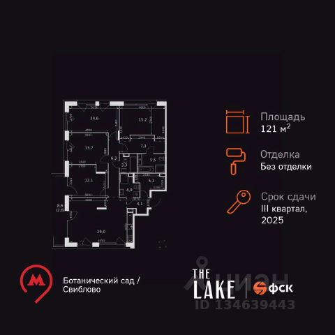 Прямая продажа от застройщика! Жилой Комплекс премиум-класса. Продаётся 5-к квартира номер 76 общей площадью 122.3 кв.м. на 13-м этаже 16 этажного здания. Без отделки. Цена с учётом скидки. Особенности квартиры: - Квартиры премиум класса в парке у воды - Высокая транспортная доступность - Французские балконы и террасы - Мастер-зона с санузлом. Уют и комфорт в одном пространстве. - Просторная спальня, в которой можно разместить большую кровать. - Угловая планировка - больше пространства для ваших идей. - Увеличенное остекление - больше света и простора в вашем доме. - Увеличенная ширина окна/окон - больше света и визуального простора. - Увеличенное количество окон - дополнительное освещение и свежий воздух. - Просторная ванная - место для расслабления и уединения. - Возможность установить вторую раковину или биде - удобство для всей семьи. - Гостевой санузел - комфорт и удобство для ваших гостей. - Душ помимо ванной - дополнительное удобство для вашей семьи. - Евроформат - просторное и удобное жилье с отличной планировкой. - Увеличенная высота потолков - ощущение простора и легкости. - Кухня-гостиная - идеальное пространство для встреч с близкими. - Гардеробная - удобство для хранения и организации вещей. - Просторная гардеробная - место для вашего личного пространства. - Ниша под шкаф - компактное и удобное место для вещей. - Французский балкон - стильный элемент с видом на город. - Большой балкон - больше пространства для вашего отдыха. - Панорамное остекление балкона - наслаждайтесь видами из вашего балкона. Информация о комплексе: Клубный дом The LAKE, расположенный в Капустинском парке у пруда, заинтересует ценителей тишины и уединения, но с возможность оставаться в центре событий. От неспящих магистралей мегаполиса The LAKE ограждают соседние кварталы, пышные кроны деревьев и серебристая водная гладь. Расположение у воды позволяет быстрее восполнять внутреннюю энергию. Высочайший уровень архитектуры, интерьеров и инженерии отвечает самым взыскательным представлениям о том, каким должен быть Дом. Все это делает ЖК The LAKE настоящим местом силы. Транспортная доступность: Всего в 4 минутах от м.Свиблово. В 12 минут от м. Ботанический сад. До ТТК 9,2 км и 10,1 км до Садового кольца Внутренняя инфраструктура: Мир стиля и элегантности начинается с гранд-лобби. Вы словно попадаете в другой мир-так и хочется остановиться, чтобы детально рассмотреть это великолепное пространство. Высокие пятиметровые потолки устремились вверх, добавляя торжественности помещению. Через витражные окна льются солнечные лучи. При основном входе разместился мейлрум. В этом отдельном помещении с почтовыми ящиками комфортно забирать и оставлять корреспонденцию. Передать и принять посылку помогают доброжелательные консьержи. Здесь же находится клубная зона только для резидентов. К ней относятся коворкинг и детская игровая комната. У второй секции расположены функциональные помещения: колясочная, комната "чистых лапок", сануз