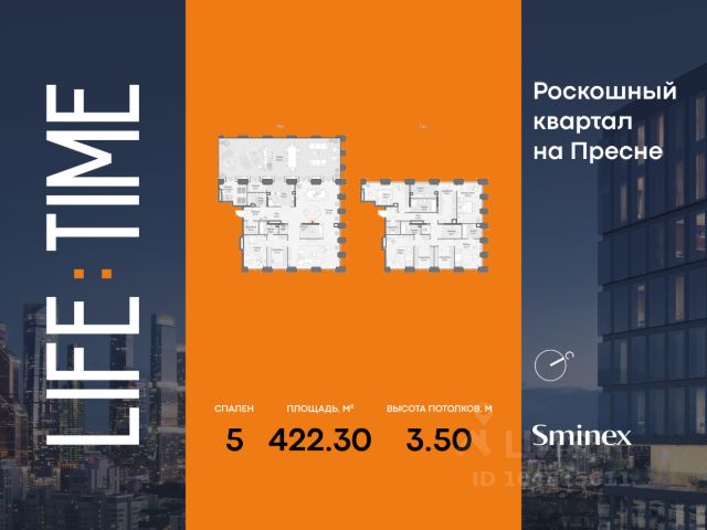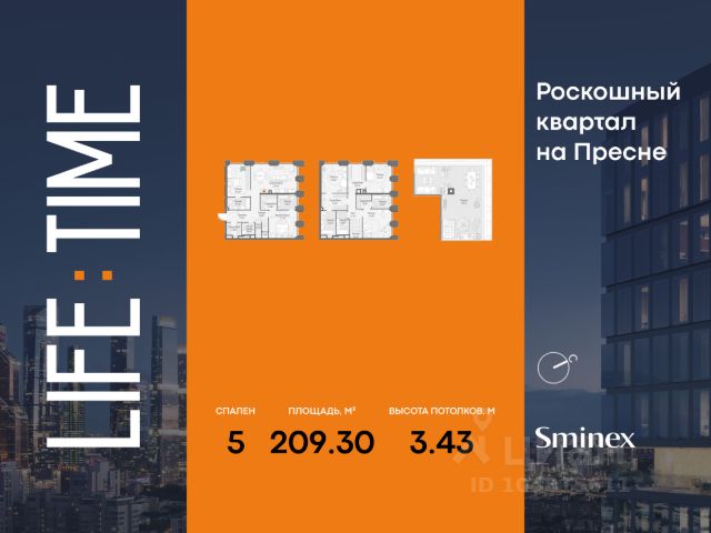 Life Time - роскошный современный квартал на Пресне, в наиболее быстро растущем премиальном районе ЦАО. Его насыщенная инфраструктура и выгодное расположение дарят время для жизни. Вы больше не тратите его на дорогу или ожидание, при этом ни в чём себе не отказывая. На территории предусмотрено всё для комфортной жизни: • двор-парк площадью 1,8 гектара с прудом и фонтанами; • Clubhouse - инфраструктурный центр в отдельном здании с исчерпывающими возможностями для спорта, отдыха и досуга только для жителей; • спортивная инфраструктура на улице и в помещении, в том числе бассейн длиной 25 метров, хот-таб, хаммам, сауна, бьюти-зона; • клубная гостиная с террасой; • всё для развития и досуга детей любого возраста, в том числе детский сад и школа. Life Time находится в центре сложившегося премиального района, в окружении многочисленных парков. Удобная транспортная доступность и прямой выезд на Звенигородское шоссе позволяют без проблем добраться до Садового кольца и Москва-Сити. Архитектурный стиль квартала - роскошный минимализм. Дома десятилетиями будут выглядеть современно. В Life Time представлен широкий выбор как квартир, так и особых форматов: двухэтажные пентхаусы с каминами и террасами, скай-виллы.