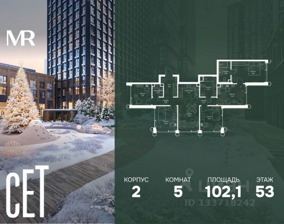 Прямая продажа от застройщика. Продаётся 5-комнатная квартира общей площадью 158.70 м² с предчистовой отделкой в ЖК Веер на 2-м этаже 59 этажного дома. Жилой комплекс бизнес-класса Веер от компании MR — это футуристичный мультиквартал, расположенный в престижной локации на западе Москвы. Благодаря переменной высоте башен — двух 22-этажных, 46-этажной и двух 59-этажных — возникает динамичность в силуэте комплекса, а его яркий образ вносит разноплановость в архитектурный пейзаж района. Расположение и транспортная доступность: • Веер удобно расположен в непосредственной близости от Кутузовского проспекта, обеспечивая быстрый доступ к центральным районам Москвы • Комплекс находится непосредственно напротив самого большого природного заказника в Москве - парка "Долина реки Сетунь", а за семь минут можно доехать до памятника садово-паркового искусства, Троекуровского леса. • Всего в 15 минутах - центр города, самая престижная бизнес-школа управления России "Сколково", дом творчества "Переделкино". Инфраструктура: Разнообразить свой день резиденты Веер смогут также проводя больше времени на свежем воздухе. Двор разделен на 4 зоны разных эмоций и действий, которые пересечены и соединены веерными прогулочными маршрутами: • Спортивная площадка устроена в глубине "Кленовой рощи" • В "Чайном домике" будет создан навес с утеплением для отдыха в любую погоду • Площадки для детей воплотятся в "Волшебный лес" с цветами, зеркалами и световым дизайном • "Центральная площадь" устроена у водного оазиса живописного пруда. Компания MR предлагает своим клиентам специальные условия приобретения квартир в рамках программ ипотечного кредитования от банков-партнеров.