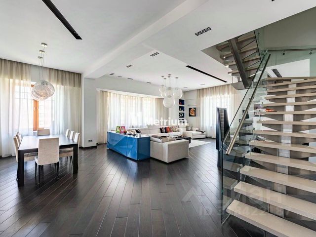 Уникальная роскошная квартира с новым ремонтом, полностью готовая к проживанию, в одном из самых престижных районов Москвы - Хамовниках. Комплектация квартиры продумана до мелочей и воплощена с использованием самых изысканных мировых брендов. Элитная недвижимость в центре Золотой Мили. Ультрасовременный клубный дом "Стольник" с собственным фитнес-клубом, бассейном, сауной и переговорными комнатами. Круглосуточная охрана. Планировка и техническое оснащение квартиры: • 3 Спальни, кабинет, просторная гостиная, гардеробные при каждой спальне, 4 санузла, сауна и постирочная; • Централизованная система приточно-вытяжной вентиляции: фанкойлы (обогрев/охлаждение); • В квартире установлена форсуночная система увлажнения без лишнего шума и конденсата; • Система Умный дом - с автоматическим и голосовым управлением температурой в комнатах, освещением, шторами, аудиосистемой. Умный дверной замок; • Камин и светодиодная подсветка во всех помещениях; • Гостиная с премиальным домашним кинотеатром: ТВ 98 дюймов, звук Хай-Энд (6 колонок), винил и профессиональное караоке; • Сенсорные датчики - автоматическое включение света при входе в помещения; • Подогрев полов в санузлах и прихожей; • Двухместная ванна-джакузи с двумя независимыми электронными блоками управления, опция массажа с выбором зон и мощности, уникальная система домашнего СПА - Koller Milk. • Холодильник для 6 шуб, холодильник для кремов (Biszet), сейф для драгоценностей и денег с механизмами автоподзавода часов, сушильный шкаф; • Сауна и инфракрасная панель Repabad, умные унитазы Geberit, биде. Мебель, Декор и Бренды: • Паркет, стеновые панели, мрамор, двери, обои и лепнина - итальянское и бельгийское производство; • Мебель Francesco Molon, Turri, Vittoria Frigerio, Giorgetti, Bruno Zampa; • Кухня Tessarolo; • Мебель, сантехника, смесители и аксессуары в санузлах - THG, Cristal& Bronze, Milldue (Италия, Франция); • Свет: Barovier&Toso, Turri, Patrizia Garganti; • Шторы и покрывала - Италия, Франция, Швейцария. Комплектация квартиры под полный ключ • Постельное белье, пледы, халаты, полотенца Loro PIANA, Jesurum, Bianca Perla, Armani, Frette (Италия, Швейцария); • Плечики-вешалки - 80 штук во всех вариациях и шкафах (Pinetti, Toscanini); • Вазы, свечи, диффузоры ароматов (Франция, Англия); • Шкатулки для драгоценностей и хранения и подзавода часов (Германия, Италия); • Кожаные лотки и подносы для хранения мелочей и кожаные аксессуары для рабочих столов - Ralph Lauren, Pinetti; • Зеркала, постеры, фоторамки, предметы декора и интерьера - Англия, Франция (Christofle, Trowbridge Gallery, Armani); • Бокалы, вазы, хрусталь - Ralph Lauren, Mascheroni; • Кухонная техника Bugatti, Kuppersbusch, Gaggenau, Miele; • Посуда для приготовления пищи Mepra; • Обеденный сервиз на 8 человек в полном комплекте - Legle (Швейцария); • Столовые приборы - 2 комплекта (Christofle и Robbe&Berking). Все перепланировки легализованы. 2 машиноместа в подземном паркинге входят в стоимость. Продам 5-комнатную квартиру вторичка в районе Хамовники в Москве.