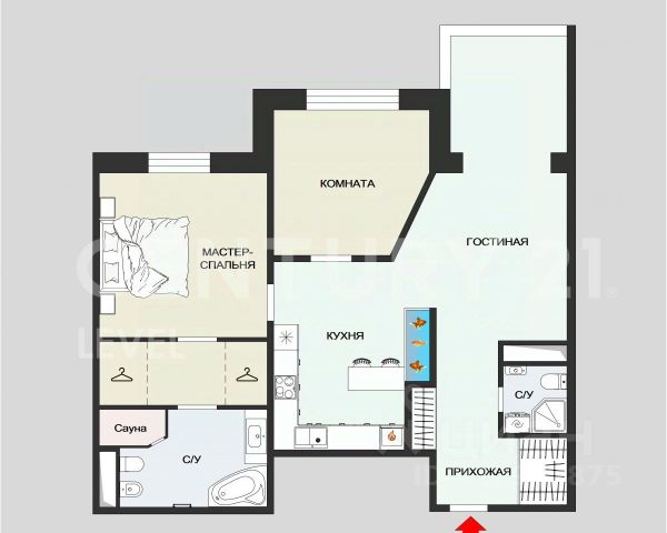 Просторная 3-комнатная квартира с роскошной гардеробной и ванной комнатой.