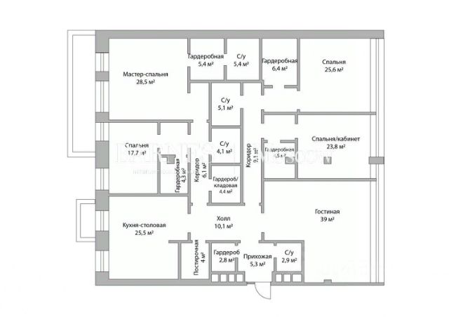 Вариант планировочного решения: кухня-гостиная с выходом на террасу, 3 спальни, каждая - с ванной и гардеробной комнатами, гостевой, с/у, постирочная, гардероб для сезонных вещей.