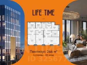 Просторная квартира с четырьмя спальнями площадью 162 м² в комплексе премиум-класса Life Time. Квартира без отделки расположена на 11-м этаже в корпусе С.