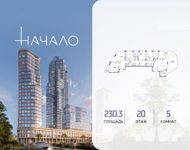 В престижном районе Пресня, на перекрестке делового и исторического центров Москвы, продается многокомнатная квартира площадью 216.40 кв. м без отделки. Квартира находится на 23 этаже 24-этажного дома, в новом элитном жилом комплексе "Начало" от девелопера "Донстрой". Реализация проекта запланирована на 1 квартал 2030 года. Начало - футуристический дом на Пресне в нескольких минутах от Сити и Садового кольца. Проект по-настоящему космического масштаба, где есть все, чтобы раскрыть себя и свои возможности. Расположение Пресня - один из самых престижных районов Москвы. Жить здесь - значит стать частью истории столицы, быть в эпицентре деловой активности города и ощущать, как сама Вселенная вращается вокруг вас. - 5 минут пешком до Красногвардейских прудов; - 15 минут пешком до ст. метро "Улица 1905 года"; - 6 минут на автомобиле до Садового кольца и небоскрёбов "Москва-Сити"; - 12 минут на автомобиле до Кремля. Архитектура как путешествие Как росток пробивает скалу, как растет кристалл, как ракета устремляется ввысь - так формируется архитектурный образ этого дома. Точно выверенный баланс между футуристичными формами и функциональным содержанием дома выводит жизнь в нем на новую орбиту. Стеклянные фасады отражают небо и город, превращая здание в зеркало для окружающего ландшафта. Двор между небом и землёй Просторная территория двора с тремя тематическими зонами отдыха: "Млечный путь" - для детских игр и развлечений; "Космический сад" - для тихого отдыха и релакса; "Метеоритный сад" - для любителей спорта. Открытый променад - сквозной маршрут на крыше стилобата с зонами отдыха, занятий спортом, детских игр и совместной работы. Все площадки плавно связаны между собой прогулочной дорожкой. Теплая кольцевая галерея и мосты над пространством двора - все корпуса "стыкуются", точно модули космической станции. Главный центр притяжения В составе проекта возводится собственный комьюнити-центр, где создана идеальная атмосфера для любых начинаний: - Детский клуб для будущих покорителей Вселенной; - Коворкинги для решения задач планетарного и космического масштабов; - Переговорные для судьбоносных и просто важных встреч; - Лаунжи с атмосферой дзена и релакса; - Библиотека для спокойного чтения; - Кинотеатр для классики и блокбастеров. Территория комфорта и приватности Всё нужное рядом: - Современный образовательный центр со школой и детским садом - для ваших детей; - Фитнес-центр с бассейном - для релакса и борьбы со стрессом; - Ресторанная улица: кафе, рестораны, летние террасы - для деловых обедов и семейных ужинов; - Пекарня и минимаркет в доме - для ежедневных покупок; - Сквер у дома - для неспешных прогулок и спокойного отдыха; - Никаких такси на улице. Машина заберет вас прямо в подземном паркинге вашего корпуса.