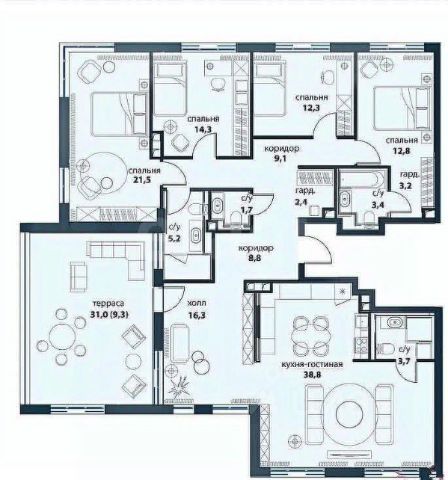 Продаётся просторная квартира 171 м² в бетоне с собственной террасой 30 м² в ЖК Событие3. Ключевые характеристики: - Общая площадь: 171 м² (в бетоне, готова под индивидуальную отделку). Один из вариантов планировки: Спальня_1 16 м², Спальня_2 15,4 м², Спальня_3 20,7 м², Спальня_4 16,2 м², Кабинет 14 м², Кухня-гостиная 37,8 м². 4 с/у, гардеробные. - Собственная терраса: 30 м² — идеальное место для отдыха, летних ужинов и зелёного уголка. - Этаж: 19 из 21 — отличные панорамные виды на три стороны света, много света и хорошая вентиляция. - Планировка даёт гибкие возможности зонирования: просторная гостиная, несколько спален, кабинет, гардеробные, прачечная и пр. (по проекту). Плюсы ЖК: - Дом обращен прямо к самой широкой части парка Событие. - Террасы на крышах дарят всем жителям дома возможность наслаждаться видами парка и города 3 эксплуатируемые кровли на последних этажах. - Панорамные лифты превращают каждую поездку в удовольствие любоваться парком с высоты. - Двор без машин избавлен от автомобилей. Огороженная территория дома обеспечена круглосуточной охраной, системами контроля доступа и видеонаблюдения. - Площадка для воркаута прямо перед входом в спортивный зал помогает разнообразить физическую активность. - Игровая площадка у входа в собственный детский клуб буквально становится его продолжением. - Перголы, теневые сады и зеленые комнаты дарят тишину и уединение - Собственная площадка для праздников дает отличный повод для новых знакомств и веселых посиделок в компании друзей-соседей. - Двухуровневый подземный паркинг с расширенными машиноместами и возможностью установки электрических зарядных устройств. Отдельный подземный уровень с кладовыми помещениями и прямым лифтом на любой этаж. - Автомойка прямо в доме, чтобы ваш автомобиль сиял чистотой каждый день при любой погоде - Архитектурный проект мирового класса от LDA Design и UHA London (Великобритания). Плюсы расположения: На авто: ДО МОСКВА-СИТИ И ТТК 10 МИНУТ, ДО САДОВОГО КОЛЬЦА 15 МИНУТ, ДО АЭРОПОРТА ВНУКОВО 25 МИНУТ Пешком: ДО СТАНЦИИ МЕТРО МИЧУРИНСКИЙ ПР-Т 8 МИНУТ, ДО СТАНЦИИ МЕТРО АМИНЬЕВСКАЯ 12 МИНУТ - Удобная транспортная доступность и хорошие выезды на ключевые магистрали города. - Развитая инфраструктура района: магазины, школы, детские сады и поликлиника в доступной близости. - Близость зелёных зон и мест для прогулок — комфортная среда для жизни и семейного досуга. - Спокойный городской район с удобствами для повседневной жизни и возможностью легко добираться до центра. Почему это выгодно: - Большая площадь и терраса дают уникальную возможность создать эксклюзивный интерьер под себя или получить высокую арендную доходность. - Высокий этаж и виды на три стороны обеспечивают приватность и хорошее естественное освещение. - Расположение и застройщик повышают ликвидность объекта. Квартира в собственности. Без обременений. Ключи на руках. Звоните!
