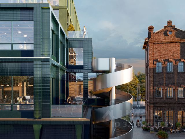 На территории будут расположены спортивные студии, кафе и рестораны, коворкинги, офисные и торговые помещения, арт студии и зеленое пространство для отдыха, паркинг на 150 машиномест.