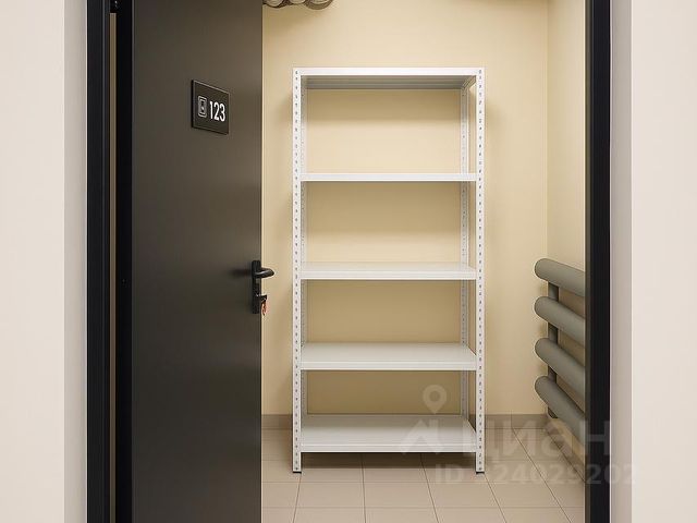 Продается кладовое помещение в жилом доме 23к1. Располагается рядом с лифтовым холлом на -1 этаже. Высокий потолок (более 4м), крепкие стены (не каркас), удобное расположение. Продается вместе со стеллажами (приблизительные размеры и описание на скриншоте), вписанными в помещение. Органы управления общедомовыми коммуникациями отсутствуют. Свет, отопление.