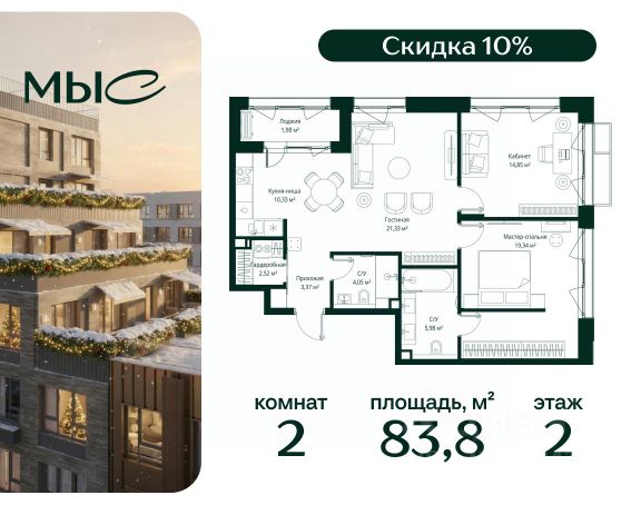 Прямая продажа от застройщика. Продаётся 3-комнатная квартира общей площадью 87.54 м² без отделки в премиальном жилом комплексе "МЫС" на 4-м этаже 12 этажного дома. Квартира расположена в корпусе "Сибирь". Проект МЫС — это, прежде всего, идеальное место для семей. В рамках проекта построят государственную школу, два детских сада и дворец спорта площадью 20 000 м2 с термальным комплексом, выплывным бассейном, фитнес-залом, теннисными, сквош и падел кортами и секциями для детей. На территории площадью, сравнимой с тремя парками Зарядье, появятся кафе и рестораны, пруд с набережной, спортивные и детские площадки, скейт-парк, лыжные и веломаршруты. Расположение: - 2 минуты до скоростной трассы М1 и Минского шоссе; - 10 минут до МКАД; - 15 минут до МЦД Лесной Городок - 20 минут до делового центра "Москва-Сити"; - 28 минут до аэропорта "Внуково". Благоустройство: - велосипедные и лыжные маршруты; - собственная набережная и парк; - лаунж-зоны в окружении природы; - беседки у очага; - дворец спорта площадью 20 000 м²; - термальный комплекс с тремя бассейнами; - 4 теннисных и падел-корта; - 6 сквош-кортов; - многофункциональный спортзал; - скейт-парк; - просторная площадь для прогулок с фонтаном; - детский клуб с творческими секциями; - гастро-доминанта; - кафе у пруда, рестораны, ритейл. Окружение - соседство с лесным фондом; - школа на 1250 мест и 2 детских сада на 350 и 255 мест; - Дубковский и Подушкинский леса, парк "Рассказовка", Мещерский парк. Действуют специальные условия при 100% оплате, подробности уточняйте у менеджера в офисе продаж.