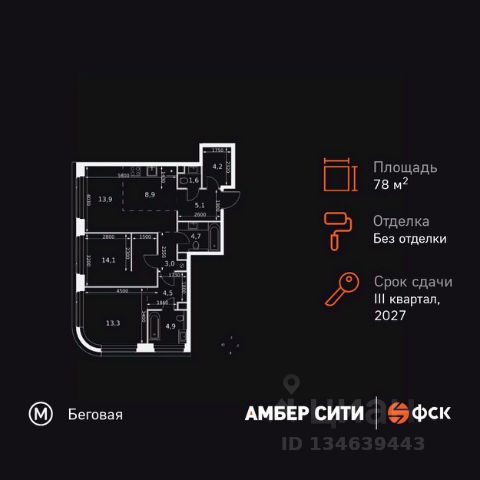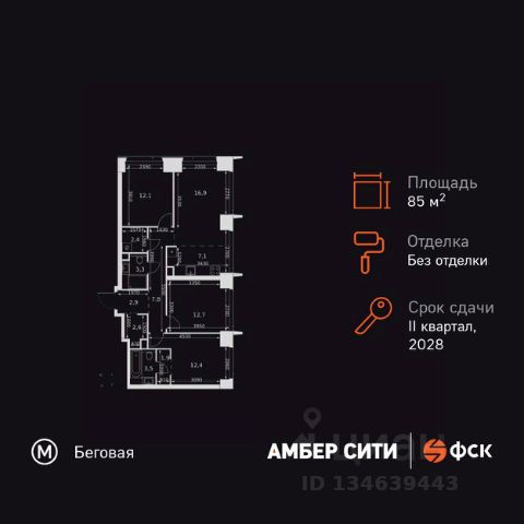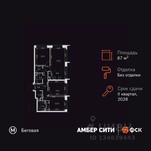 Прямая продажа от застройщика! Успейте забронировать квартиру до повышения стоимости! Жилой Комплекс премиум-класса. Продаётся 4-к квартира номер 577 общей площадью 103.1 кв.м. на 42-м этаже 46 этажного здания. Без отделки. Цена с учётом скидки. Особенности квартиры: - Организуем показ в удобное для вас время! - Мастер-зона с санузлом и гардеробной. Всё для вашего комфорта и удобства, включая личный санузел и гардероб. - Просторная спальня, в которой можно разместить большую кровать. - Угловая планировка - больше пространства для ваших идей. - Увеличенная ширина окна/окон - больше света и визуального простора. - Увеличенное количество окон - дополнительное освещение и свежий воздух. - Нестандартное окно - особенный акцент в вашем интерьере. - Гостевой санузел - комфорт и удобство для ваших гостей. - Душ помимо ванной - дополнительное удобство для вашей семьи. - Постирочная - организуйте пространство для стирки и сушки вещей. - Евроформат - просторное и удобное жилье с отличной планировкой. - Рабочий кабинет - место для работы и сосредоточения. - Можно оборудовать 2 или более рабочих места - пространство для нескольких человек. - Возможность добавить спальное место - дополнительный комфорт для гостей. - Проходная кухня-гостиная - идеальное пространство для общения и готовки. - Гардеробная - удобство для хранения и организации вещей. Квартира без отделки. Чистый холст для воплощения интерьера вашей мечты. Информация о комплексе: ЖК "Амбер Сити" - вдохновляющий квартал у Москва-Сити с архитектурой мирового уровня. Здесь кипит жизнь 24/7: парки, инфраструктура и виды на центр без городской суеты. Самодостаточная среда для работы, творчества и семьи в духе лучших районов Нью-Йорка и Гонконга. Транспортная доступность: Квартал с исключительной транспортной доступностью: ключевые точки Москвы в 15-20 минутах. Полное погружение в деловую и культурную жизнь столицы с минимальными затратами времени на дорогу. Общественный транспорт: - Метро "Беговая" - 5 минут пешком - Остановка "2-й Хорошёвский проезд" - 3 минуты пешком - Метро "Звенигородская" (строящаяся) - 10 минут пешком На автомобиле: - Москва-Сити - 10 минут - Звенигородское шоссе - 3 минуты - ТТК - 5 минут - Серебряный бор - 8 минут - Садовое кольцо - 12 минут - Кремль - 20 минут - Шереметьево - 40 минут Внутренняя инфраструктура: ЖК "Амбер Сити": многоуровневый ландшафт на 6 гектарах с зелёным бульваром, объединяющим арт-объекты, водные зоны и архитектурные формы. В закрытых дворах на стилобате - детские площадки с сенсорными элементами, зоны отдыха с креслами и настилами для йоги. Навесы с подогревом и зарядками для зимнего сезона. Активности на любой вкус: настольный теннис, петанк, чтение в тишине на оборудованных скамейках. Продуманное пространство для ежедневного отдыха и игр детей и взрослых.