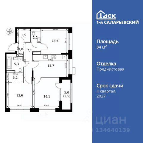 Прямая продажа от застройщика! Жилой Комплекс класса Комфорт+. Продаётся 3-к квартира номер 29 общей площадью 83.7 кв.м. на 9-м этаже 9 этажного здания. Отделка Whitebox. Цена с учётом скидки. Особенности квартиры: - Просторная спальня, в которой можно разместить большую кровать. - Распашная планировка - отличное сочетание удобства и свободы. - Увеличенная ширина окна/окон - больше света и визуального простора. - Гостевой санузел - комфорт и удобство для ваших гостей. - Место для игры/занятия спортом - идеальное пространство для активных детей. - Увеличенная высота потолков - ощущение простора и легкости. - Можно оборудовать 2 или более рабочих места - пространство для нескольких человек. - Можно оборудовать рабочее место - комфорт для работы и учёбы. - Просторная кухня - место для семейных ужинов и кулинарных экспериментов. - Просторная мягкая зона - комфорт и уют для отдыха всей семьи. - Линейная кухня - функциональность и практичность в одном решении. - Наличие острова на кухне - удобство и стиль для вашей кухни. - Гардеробная - удобство для хранения и организации вещей. - Лоджия - уютное место для отдыха и тишины. Квартира с предчистовой отделкой (White box). Вам не придется заниматься черновыми и трудоёмкими работы, а чистовую отделку и дизайн - сделайте на свой вкус. Информация о комплексе: Весь микрорайон спроектирован в концепции "без машин". Пейзаж не портят припаркованные автомобили, а родители могут не опасаться за перемещение детей по всему кварталу. Территория комплекса - царство пешеходов. А что делать, если Вы или Вам подвезли чтото габаритное? Проблему решают сквозные подъезды, открывающие доступ в здание с внешней стороны комплекса. Проезд к домам организован по внешнему контуру микрорайона. Места для автомобилей отведены на 7 этажах наземного паркинга и в подземном паркинге 6-го корпуса. За порядком и безопасностью зорко следит множество камер. Безбарьерная среда облегчает передвижение по территории молодых родителей с колясками, маленьких детей и жильцов с ограниченными возможностями. Транспортная доступность: "1-й Саларьевский" расположен в Новой Москве всего в 2 км от МКАД и 5 минутах ходьбы от метро Саларьево. Если Вы за рулем, для Вас удобный выезд на скоростное Киевское шоссе. Передвигаетесь не на автомобиле? Станция метро Саларьево и автовокзал в пешей доступности. У метро находится один из крупнейших ТЦ Новой Москвы "Саларис". Это значит, что всевозможные покупки и разнообразные развлечения для всей семьи тоже рядом. Личный автотранспорт: До Киевского шоссе - 0,2 км До МКАД - 2,4 км До Калужского шоссе - 5 км До Ленинского проспекта - 3,2 км Общественный транспорт: До станции метро "Саларьево" - 7 мин пешком До остановок наземного транспорта - 5-10 мин пешком До Ленинского проспекта на автобусе - 10 мин Внутренняя инфраструктура: Во дворе царит атмосфера легкого беззаботного настроения. По сторонам расположились любимые местными жителями магазинчики, где можно
