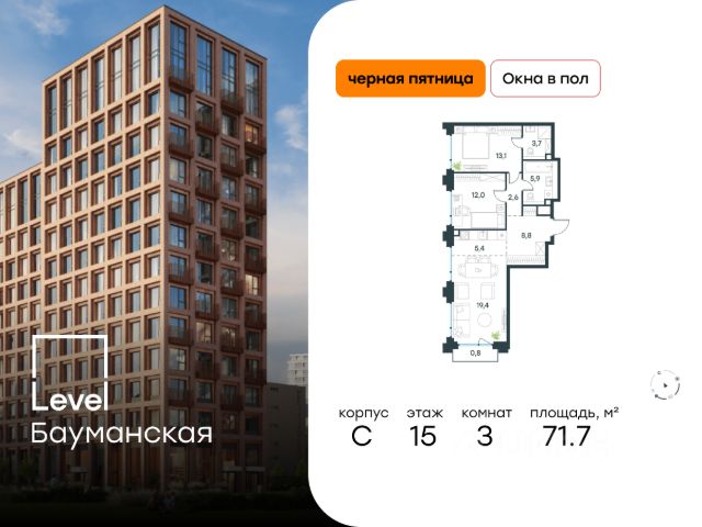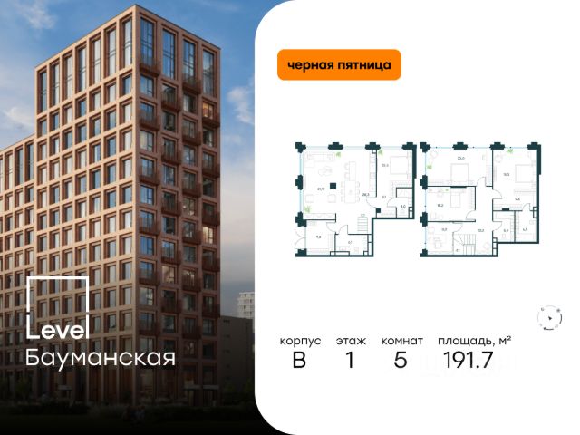Цена указана с учётом скидки В Басманном районе (ЦАО) продается 3-комнатная квартира площадью 73.50 кв.м без отделки. Квартира расположена на 3 этаже 11-этажного корпуса "Корпус A" в жилом комплексе бизнес-класса Level Бауманская (компания Level Group). Отличная транспортная доступность: - 15 мин. пешком до метро "Бауманская" и "Электрозаводская"; - 4 мин. на авто до ТТК; - 8 мин. на авто до Садового кольца; - 15 мин. на авто до Кремля. Продуманный архитектурный проект: - Архитектура от бюро ARCH(E)TYPE, вдохновленная историей района; - 95% квартир с панорамными видами на набережные, парки и сталинские высотки; - Высокие потолки от 3,02 м до 6,3 м; - Стильные лобби с окнами в пол и комфортными лаунж-зонами; - Благоустроенный закрытый двор без машин. Расположение и инфраструктура: Level Бауманская расположен в престижном Басманном районе (ЦАО). В пешей доступности находится легендарный МГТУ им. Баумана - университет с 190-летней историей, Британский и Ломоносовский лицеи, а за 10 минут на автомобиле можно доехать до НИУ ВШЭ и других престижных вузов. На территории проекта также будет создана развитая внутренняя инфраструктура: собственный детский сад и 10 коммерческих помещений на первых этажах домов. Благоустройство: Концепция благоустройства создана в соавторстве с именитым бюро GAFA. На площади 0,35 га расположатся зоны для отдыха, занятий спортом и прогулок. Во дворе можно не только отдохнуть, но и поработать на свежем воздухе: для жителей жилого комплекса будет создан коворкинг прямо во дворе - открытые беседки и Wi-Fi на территории. Атмосферу приватности подчеркнёт обилие растительности - деревья и кустарники займут 50% двора. За счёт большого количества хвойных насаждений территория жилого комплекса будет зелёной круглый год. Инженерия и комфорт: Жители Level Бауманская не зависят от сезонного отключения горячей воды. Для этого в проекте предусмотрены центральные водонагреватели, обеспечивающие комфорт круглый год. Для безопасности созданы следующие системы контроля доступа: круглосуточное видеонаблюдение всех общественных зон (лобби, двор, лифты, паркинг), вызывные панели у входов на закрытую территорию, видеодомофоны с возможностью управления через мобильное приложение, распознавание автомобильных номеров при въезде/выезде в/из паркинга. Доступ во внутренний двор, паркинг и лобби производится по единому ключу доступа. По заявке собственнику предоставляется возможность просмотра изображения отдельных видеокамер. Лифты: В жилом комплексе устанавливается лифтовое оборудование Sicher Elevator - одного из ведущих производителей с 20-летним опытом и 40 представительствами по всему миру. Кабины от Sicher Elevator отличаются тихим и плавным ходом, особой износостойкостью и современными технологическими и дизайнерскими решениями. Все лифты будут иметь прямой доступ в паркинг с жилых этажей. В домах также предусмотрен сервисный лифт. Грузоподъёмность лифтов от 450 до 1000 кг, скорость 1,6 м/с.