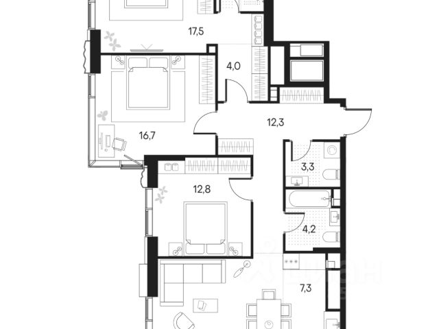 • ✓ В базе Циан 23 больших квартир на бульваре Чкаловский в Москве