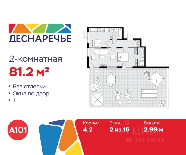 Продается трехкомнатная квартира 70 в новостройке ЖК "Деснаречье" по адресу Москва, ТиНАО, Новомосковский АО, Десеновское С/П, Десна деревня, Москва, район Троицк, ЖК Деснаречье, к. 7.1. Общая площадь квартиры - 72.40 кв. м., этаж 2 из 11, секция 2. Тип проекта, по которому построен дом - монолит, компания-застройщик - ООО "А101". Стоимость квартиры - 21544792 Р. Срок сдачи - 3 квартал 2027. ПРЕДЛОЖЕНИЯ ОТ ЗАСТРОЙЩИКА В ФЕВРАЛЕ 2026: Скидки до 10% на все квартиры. Только в офисах продаж до 28 февраля. Ипотека от 13,9 % для всех! На весь срок. "Семейная ипотека" вернулась. Ставка от 3,5 % на весь срок! Без удорожания! Выгодное ипотечное комбо: Ипотека от 2200 р./мес. и от 6 % после рождения ребёнка! Ипотека для всех "Держи пять!" - ставка 5 % на 2 года! *более подробную информацию по скидкам и акциям уточняйте в отделе продаж Масштабный ЖК "Деснаречье" состоит из 3 районов ("Парк", "Река" и "Лес") в живописном природном окружении - на берегах двух рек. На территории каждого района появится собственная развёрнутая инфраструктура и уникальное благоустройство: скверы, спортивные и игровые площадки, пешеходные и велосипедные маршруты. До станции метро "Десна" (открытие запланировано на 2027 год) - всего 10 минут пешком от района. На автомобиле до ст. метро "Ольховая" и "Прокшино" - 12 минут. "Фаст-трек" свяжет "Деснаречье" со спортивно-событийным кластером и бизнес-кварталом "Прокшино". В пешей доступности и на первых этажах домов откроются: супермаркеты, школы, детские сады, спортивная школа, медицинские клиники, кафе, пространства для досуга и развития детей и взрослых. Уже сейчас доступна действующая инфраструктура соседней локации. Это настоящий "15-минутный город", когда всё рядом. Для активного и созерцательного отдыха - живописные прогулочные территории в лесу, благоустроенные зоны вдоль рек Незнайка и Десна с пирсом и лодочной станцией, ФОК, термальный комплекс с бассейном. Закрытые дворы с системой контроля доступа свободны от машин, оснащены качественным спортивным и игровым оборудованием. Преимущества "Деснаречья": - ст. метро "Десна" (2027 год) - пешая доступность - 2 реки, природный парк, лесной массив - "15-минутный город" - вся инфраструктура рядом с домом - школы и детские сады, спортивная школа