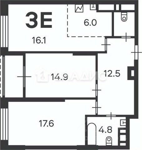Лоджия оснащена батареями (по проекту застройщика)! В квартире нет перепланировок !