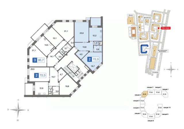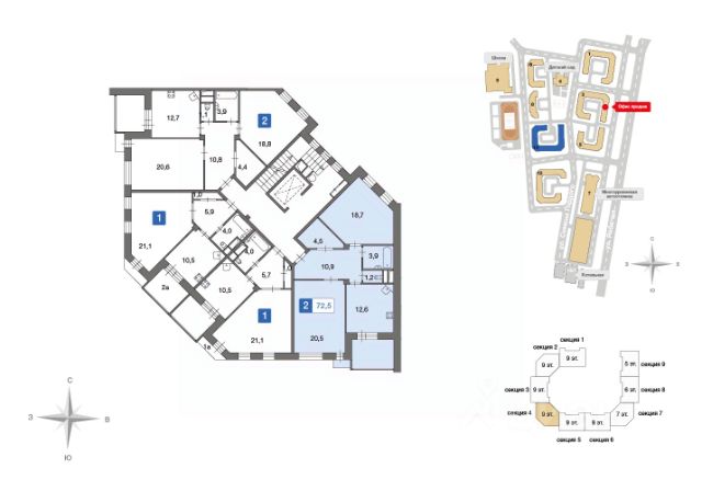 Продаётся 3-комнатная квартира в сданном доме (Семёна Гордого, 12), срок сдачи: IV-кв. 2018, общей площадью 90.5 кв.м., на 8 этаже. Расположение, транспортная доступность Жилой комплекс "Ново-Никольское" - это жилой район класса комфорт, в состав которого входят несколько десятков жилых зданий разнообразных форматов (коттеджи, дуплексы, таунхаусы, малоэтажные дома высотой до 3 этажей и многоэтажные корпуса высотой до 9 этажей). Район располагается на просторной территории площадью 115 га рядом с деревней Ивановское Первомайского поселения Троицкого административного округа Москвы, в 21 км от МКАД по Киевскому шоссе. Удобная транспортная развязка, ведущая к шоссе, находится в непосредственной близости от "Ново-Никольского". Трасса пролегает мимо аэропорта "Внуково". Ближайшая железнодорожная станция, "Апрелевка", расположена в десяти километрах от комплекса. Добраться от комплекса до ближайших станций метро можно на маршрутном такси 304 (до станций метро "Румянцево", "Тропарёво" и "Юго-Западная"), на автобусе 526 или маршрутном такси 522 (до станции метро "Тёплый Стан"). Инфраструктура Внутренняя инфраструктура ЖК "Ново-Никольское" включает в себя три детских сада на 150, 100 и 40 мест, две общеобразовательные школы на 825 и 285 мест, школу искусств, торгово-развлекательный центр, минимаркет, различные сервисные службы и другие объекты. Детский сад на 150 мест и школа на 825 мест уже построены и в ближайшее время будут введены в эксплуатацию. Для автовладельцев в комплексе предусмотрены парковочные места, как на придомовой территории, так и в крытом семиуровневом паркинге. Экологическая ситуация здесь благоприятная. Со стороны Киевского шоссе "Ново-Никольское" окружают лесные массивы. Река Десна, протекающая вдоль территории жилого комплекса, украшена живописным каскадом прудов. В километре от комплекса находится усадьба Старо-Никольское, главный дом которой был построен в 19 веке, и отреставрирован в 2015 году. Надежность застройщика Девелопером жилого комплекса "Ново-Никольский" выступает производственно-строительное управление "АГРОСТРОЙ", зарегистрированное в 2005 году. Организация работает как в России, так и в странах ближнего зарубежья. "АГРОСТРОЙ" возводит не только жилую недвижимость, но и социально-значимые объекты инфраструктуры: медицинские центры, торгово-развлекательные комплексы, административные здания. Также в портфеле организации есть спортивные сооружения крытого и открытого типов. При возведении жилых комплексов девелопер ориентируется на строительство целых кварталов с развитой инфраструктурой. Помимо строительных работ, "АГРОСТРОЙ" производит отделочные, комплектующие, строительные материалы, осуществляет земляные работы, занимается прокладкой наружных сетей, разводкой коммуникаций внутри зданий, а также сносом ветхого жилья. Поскольку объекты организация сдаёт "под ключ", она также выполняет отделочные работы и ландшафтное оформление придомовых территорий. Архитектура В комплексе есть все необходимые центра
