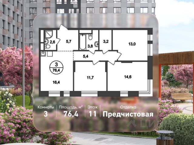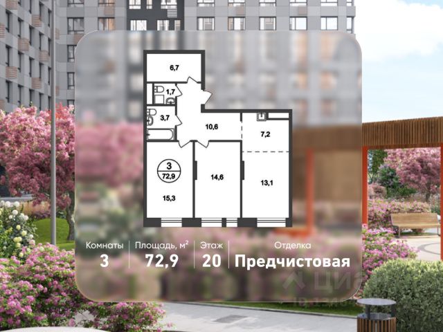 Открытие продаж готовых квартир! Продается трехкомнатная квартира с отделкой в 11 квартале города-парка "Первый Московский". Общая площадь квартиры - 72,9 кв. м, этаж - 20 из 22. Тип дома - монолитный. Дом сдан! ТОЛЬКО ДО 30 АПРЕЛЯ выгодные условия на приобретение квартиры в ипотеку или рассрочку. Звоните - и мы подберем оптимальное предложение под ваш запрос! Город-парк "Первый Московский" расположен всего в 7 км по Киевскому шоссе от МКАД на территории Новой Москвы. Из города-парка прямой выезд на Киевское шоссе и трассу Солнцево-Бутово-Варшавское шоссе. ТРАНСПОРТНАЯ ДОСТУПНОСТЬ: - 7 мин. на личном автомобиле или 10 мин. на автобусе до станции метро "Филатов Луг" - 10 мин. на автомобиле или 20 мин. на автобусе до станции метро "Рассказовка" или "Саларьево" ВНУТРЕННЯЯ ИНФРАСТРУКТУРА И БЛАГОУСТРОЙСТВО: Дома 11 квартала граничат с Ульяновским лесопарком. В концепции благоустройства воссоздано ощущение естественного взрослого озеленения. Вся территория 11 квартала разделена на 2 типа: - приватное дворовое пространство с детскими игровыми площадками. Дворы свободны от машин. - прогулочные маршруты с зонами отдыха. Прогулочный маршрут объединяет дома 11 квартала в единое пространство, за счёт оригинальной геопластики создаётся уникальный разноуровневый ландшафтный узор. В каждом из домов предусмотрены кладовые помещения на -1 и жилых этажах, а также коммерческие помещения на 1 этаже. На территории 11 квартала запланировано строительство 2 многоуровневых паркингов. АВТОРСКИЙ ДИЗАЙН: Входные группы выполнены по авторскому дизайну, оснащены системой "тёплый пол". В каждой входной группе будет располагаться комфортабельная зона ожидания с мягким диваном и кашпо с крупными растениями. При входе предусмотрено помещение для хранения колясок, на -1 этаже располагается велопарковка.