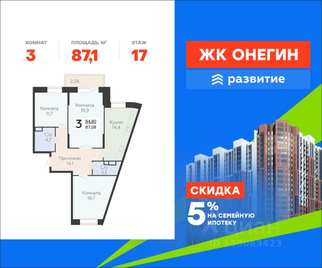 В жилом комплексе, расположенном по соседству с ландшафтным парком "Южное Бутово", продается 3-комнатная квартира площадью 86.20 кв. м. без отделки. Квартира расположена на 2 этаже 1 корпуса в жилом квартале комфорт-класса "Новые Смыслы" (ГК Unikey/Юникей). Доступная и удобная локация: - 10 минут ходьбы до станции метро "Потапово". - 25 минут ходьбы до станции метро "Бунинская аллея". - 15 минут на авто до Калужского шоссе. - 20 минут на авто до МКАД. - 30 минут на машине до аэропортов "Внуково" и "Остафьево". Продуманный архитектурный проект: - Разноуровневые секции с эстетичные башнями и контрастными цветовыми сочетаниями, напоминающими башни в Сити. - Сказочные виды из окон на современный район столицы. - Авторские планировки с потолками в 3 метра, просторными кухнями-гостиными и мастер-спальнями. - Комфортные бесплатные общественные пространства. - Подземный паркинг с прямым доступом на лифте. - Настоящий лес с живописными пейзажами и прудом прямо во дворе. Расположение Комплекс "Новые Смыслы" расположится в благоприятном районе Новой Москвы - Коммунарка. Зеленое окружение, богатая инфраструктура развивающегося района - все это сформирует особое пространство для комфортной жизни, наполненной смыслом. 10 минут на велосипеде - и вы в ландшафтном парке "Южное Бутово" или сквере у Потаповских прудов. Чуть дальше расположен Бутовский лесопарк. В окружении "Новых Смыслов" вы найдете все необходимые социальные объекты. В двух шагах от дома находится 5 школ, более десятка детских садов, секции для занятий малышей и подростков, частные клиники, супермаркеты, рестораны, студии красоты и фитнес-центры. За 12 минут на авто вы доберетесь до ледовой арены, комплекса "Спорт Станция" и спа-центра "Termoland". Внутренняя инфраструктура Для жителей "Новых Смыслов" будут созданы бесплатные общественные пространства: - Деловая гостиная с эстетичным коворкингом и переговорными. - Гостиная для души и тела, включающая фитнес-зону с тренажерами и пространства для стретчинга, йоги и медитаций. - Гостиная детства, где дети будут играть и развиваться под присмотром тьютора. - Кино-гостиная - кинотеатр на крыше одного из домов, предлагающий разнообразную программу. - Прачечная, работающая только для жильцов. Вместе с корпусами комплекса на территории запланировано строительство детского сада. На первых этажах корпусов откроются кофейни, пекарни, сервисы быта и пункты доставки. Благоустройство Чтобы отдохнуть от суеты города, достаточно выйти во двор: здесь раскинулся настоящий лес с живописными пейзажами. В тени деревьев жителей ждут пруд с мостиком и беседкой на берегу, тихие прогулочные аллеи, спортивная площадка и зоны для занятий йогой и бадминтоном на свежем воздухе. Юных жителей порадуют современные детские площадки, жукарий и специальное пространство для подвижных игр. Безопасность на территории гарантирована: двор огорожен от машин и оснащен камерами видеонаблюдения.