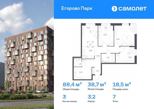 Продаю трёхкомнатную квартиру площадью - 75,4 кв. м.