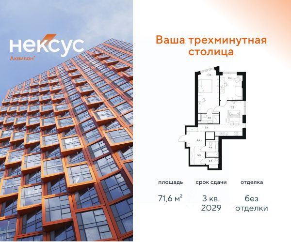 Продажа от застройщика. О проекте: В основе Несус Аквилон лежит принцип трехминутного города, где вся жизнь: работа, отдых, здоровье, общение и культура сосредоточены в шаговой доступности. Он не просто экономит время, а кардинально перераспределяет его. В этих условиях главным логистическим узлом становится лифт, который в считанные секунды переносит из квартиры в собственный фитнес-рум, панорамный двор или современный коворкинг. Здесь вы сами решаете: оказаться в эпицентре событий, чувствуя пульс мегаполиса, или наслаждаться тишиной и приватностью своего пространства. И главное — вы можете переключаться, находя идеальный баланс каждый день. Несус Аквилон - ваша трехминутная столица! Транспортная доступность Несус Аквилон дарит независимость от расстояний и логистики. Ваше время теперь принадлежит только вам меньше минуты до метро Молодежная 2 минуты до Рублевского шоссе 10 минут до Проспекта Багратиона 15 минут до Москва-Сити 10 минут до МКАД 20 минут до ТТК Архитектура 46-этажная башня станет новой архитектурной доминантой, символизирующей динамику и технологичность современной жизни.Комбинация алюминиевых кассет, стеклофибробетона и витражного остекления фасада создает монументальную оболочку, а теплая цветовая гамма добавляет масштабной форме визуальной теплоты. Три разных по характеру стороны башни — от строгой "зубчатой" геометрии до живописных эркеров — создают многогранный, ритмичный образ, дополняемый невесомыми балконами со стеклянным ограждением. Архитектура проекта живет в диалоге с городом: променад вдоль парящего стилобата со стрит-ретейлом становится естественным продолжением общественного пространства. Планировки в концепции Разумные метры Мы создали квартиры, где пространство работает на ваш комфорт. В основе концепции "Разумные метры" правильная геометрия помещений и тщательно продуманные эргономичные решения. - Высота потолков до 3,55 метров - Многообразие планировок: от студий до четырехкомнатных квартир классического и евро-формата - Многофункциональные пространства: кухни-гостиные для приема гостей и зонированные мастер-спальни - Продуманная инфраструктура быта: отдельные постирочные и гостевые санузлы - Удобные системы хранения: встроенные ниши и гардеробные зоны - Уникальные форматы: пентхаусы, комнаты с двумя окнами, угловое панорамное остекление - Возможность открытия окон на всех высотах Для студий и однокомнатных квартир мы предлагаем готовое решение — отделку White box, позволяющую сразу приступить к чистовому ремонту на ваш вкус. Для остальных планировок предусмотрена черновая отделка, чтобы воплотить все интерьерные пожелания. Здесь пространство адаптируется под ваш образ жизни, а не вы подстраиваетесь под планировку. Приватное благоустройство Скрытый на виду панорамный двор-терраса, расположенный на высоте 7 метров, объединил внутреннюю камерность и внешнюю динамику городской жизни. - Многоуровневое озеленение с всесезонными композициями, сохраняющими декоратив