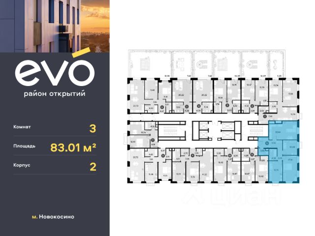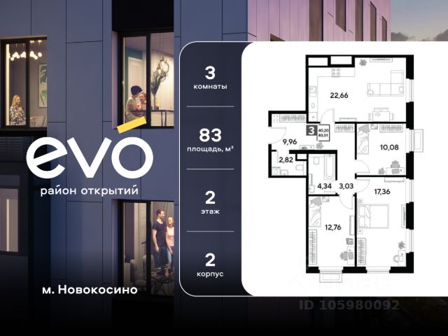 Продается трекомнатная квартира 79.66 кв.м. в жилом комплексе EVO на 16 этаже по адресу: Московская область, г. Реутов, ул. Комсомольская. EVO - проект комфорт-класса от девелопера Dogma. Каждый житель сможет открыть для себя максимум возможностей. Совершенствоваться во всех направлениях: физическом, эмоциональном и материальном. В EVO можно открыть для себя новые виды спорта, найти единомышленников по хобби, партнеров по бизнесу, развивать в детях новые грани, наслаждаться природой и лаконичной архитектурой. Безопасность - Закрытая территория - Круглосуточное видеонаблюдение - Контроль доступа Расположение Пешком - 7 минут до станции Реутов - 20 минут до метро Новокосино На машине - 4 минуты до МКАД - 6 минут до шоссе Энтузиастов - 9 минут до Носовихинское шоссе - 13 минут до МСД (Московский скоростной диаметр) Более 6 га благоустройства в первой очереди - Зеленый двор без машин, кленовая аллея для прогулок - Нейродинамические площадки для детей разных возрастов - Workout зона, столы для пинг-понга, места для занятия йогой. велодорожки и дорожки для скандинавской ходьбы - Детский сад на 180 мест и школа на 750 мест - Кроссбукинг - Лобби с зоной ожидания, колясочной и лапомойкой - Магазины и кафе на первых этажах Окружение - Реутовский центральный парк, Александровский сквер, Фабричный пруд - ТЦ "Экватор", ТК "Шоколад" - Спортивный комплекс "Старт", Ледовый комплекс "Реутов Арена" - Музей-усадьба "Кусково" Социальная инфраструктура В первой очереди предусмотрено строительство детского сада на 180 мест и школы на 750 учащихся. В 10 минутах ходьбы от EVO находится детский технопарк "Изобретариум", в котором более 60 научных секции: от IT до промышленного дизайна. Для творческих ребят рядом есть художественная и музыкальные школы, хоровая студия.