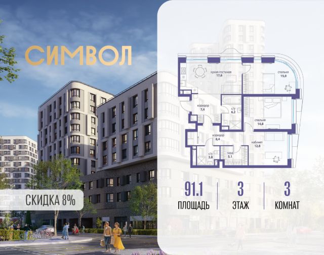 Скидка до 8% действует до 31.03.2026 г. при 100% оплате и не субсидированной ипотеке. Продается 3-комнатная квартира от застройщика: общая площадь 87.10 м², жилая 38.60 м², кухня 17.60 м², 10-й этаж, жилой квартал "Вдохновение", корпус 34 (секция 1). Срок сдачи: 4 квартал 2027 года. Позвоните сейчас и забронируйте квартиру! Квартал бизнес-класса СИМВОЛ - это городское пространство нового поколения в историческом районе Лефортово, на границе ЦАО, в 2 км от Садового кольца. Бионическая архитектура СИМВОЛА превратила Лефортово в суперсовременное и модное пространство. Из окон, с балконов и террас просторных квартир СИМВОЛА открываются отличные виды на город и новый парк "Зеленая река", "протекающий" через все кварталы комплекса на 2 км. В квартале уже есть все, что нужно для комфортной жизни: кафе и рестораны, супермаркеты и магазины, медицинские и физкультурно-оздоровительные центры, салоны красоты и барбершопы, аптеки и оптики, химчистки, пункты доставки и другие сервисы - всего более 90 действующих объектов внутриквартальной инфраструктуры. Для юных жителей СИМВОЛА открыты детский сад и инженерный лицей при МГТУ им. Баумана. Особенности квартала: • Свой парк "Зеленая Река" - 10 га зелени и развлечений на любой вкус! • Уникальная для Москвы архитектура - Проект создан архитектурной мастерской ATRIUM по дизайн-коду британских бюро LDA Design и UHA London. • Богатая инфраструктура с детскими садами и лицеем им. Баумана, кафе и ресторанами, супермаркетами и аптеками, зоной для фитнеса, бассейном и мед. центром. • Квартиры с панорамными окнами, террасами, ванными с окнами и каминами редких форматов. • Закрытые безопасные зелёные дворы-парки без машин!