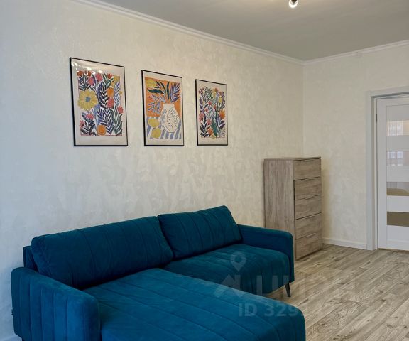 — Просторная гостиная (24 м²) в современном стиле лофт с декоративной стеной из натурального дерева, зоной для ТВ, встроенным освещением. В проходе между кухней и гостиной установлены направляющие для дверей купе (можно зонировать пространство)
