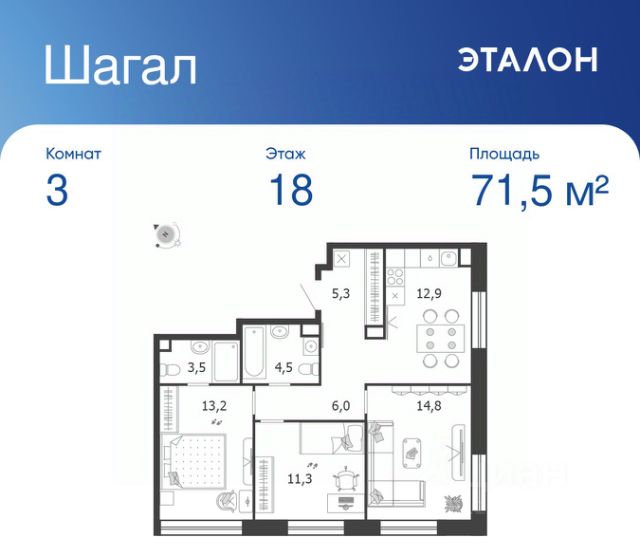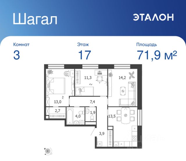 Продается 3-к квартира без отделки в ЖК "Шагал". Общая площадь квартиры — 71.7 кв. м, этаж 7 из 8. Тип дома — монолитный. Цена указана при 100% оплате. Квартал Шагал — крупнейший проект комплексного освоения в Москве. В проекте реализуется продуманная система маршрутов. Еда, покупки, услуги, прогулки, спорт, образование, работа и развлечения — все будет находиться рядом с домом: принцип 15-минутной доступности инфраструктуры и сервисов. Разнообразие и продуманность пешеходных маршрутов, а также короткие расстояния между основными точками притяжения мотивируют резидентов Шагал с удовольствием передвигаться по району пешком, не выпадая из ритма большого города. Продуманная транспортная сеть района и безопасный скоростной режим создают комфортные условия для перемещений любым способом: на автобусе, машине, самокате или велосипеде. Не нужно выезжать из района, чтобы получить комфорт и сервис самого высокого современного стандарта: все необходимые услуги, инфраструктура, парки и вторая по протяженности набережная в городе — на расстоянии 15-минутной прогулки от вашего дома. Квартал Шагал станет первым в Москве жилым районом, где будут комплексно реализованы инновационные подходы в проектировании и строительстве зданий. Архитектурная композиция состоит из домов отличающегося типа. Высотные башни-доминанты с видовыми квартирами, дома пониже, растворяющиеся в спокойствии внутренних двориков, малоэтажные камерные таунхаусы и разноэтажные дома с лоджиями на первой береговой линии соединяются в одно эстетичное современное произведение. В результате создаётся насыщенное идентичное пространство, подчёркнутое плавностью природных форм, наполненное светом, воздухом и свободой.