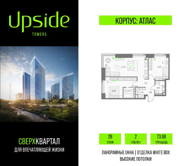 Продаётся 3-комнатная квартира площадью 93.47 кв.м на 9 этаже 19 этажного корпуса Олимп в квартале небоскребов "Upside Towers". В квартире отделка White-box, c видом на корпус Монте Бьянко, корпус Эверест, внутренний двор, ландшафтный парк. Номер квартиры В0907. Upside Towers - технологичный квартал строится в динамично развивающемся Бутырском районе, в 3 мин. от метро, в 5 мин. от ТТК. На территории 7 га возводится 5 высотных башен от 19 до 58 этажей, названных в честь главных вершин земли. Квартиры с панорамными окнами в пол, высокими потолками и современными инженерными решениями. Благоустроенная зеленая территория включает: приватные дворы, природный комплекс, прогулочный бульвар, ландшафтный парк 2,5 га с сенсорным садом и многофункциональными игровыми и спортивными площадками. В корпусе откроются магазины, кафе и рестораны, а также другие объекты коммерческой инфраструктуры. Большое внимание в проекте уделяется созданию социальной инфраструктуры. Между "Атласом" и "Олимпом" в трехэтажном стилобате разместится уникальное пространство закрытый клуб для жителей квартала Upside Club площадью 2 000 кв. м. Здесь разместятся: каминный зал с роялем, многофункциональная детская зона c двухуровневым игровым оборудованием для малышей и дошкольников, плей-рум для подростков, домашний кинотеатр, коворкинг, переговорные и лектории. На 47 этаже башни "Атлас" откроется SKY SPA Relax с расслабляющей атмосферой, джакузи, сауной, залами для релаксации и йоги. Собственники квартир смогут в любое удобное для них время забронировать посещение спа-зоны через смарт-приложение. На крыше стилобата разместится всесезонная BBQ патио-зона с верандой и закрытыми помещениями для приготовления и отдыха. В башнях откроются смотровые террасы для резидентов с панорамными видами на город, парки, Останкинскую башню, ВДНХ, Ботанический сад и Москву-Сити. Покупая квартиру даже самого минимального размера в Upside Towers, вы получаете в пользование 2 000 м² бесплатных общественных пространств. В рамках проекта строится государственная школа и детский сад, разместится более 15 000 кв.м. коммерческой инфраструктуры. Насыщенная социальная инфраструктура формирует множество сценариев для жизни на территории квартала. В Upside Towers применяются лучшие технологии и практики, чтобы обеспечить высшее качество жизни: Воздух, не уступающий по качеству горному, обеспечит приточно-вытяжная вентиляция. Пятиступенчатая очистка воды с сохранением полезных минералов. Центральное кондиционирование. Внутрипольные конвекторы с естественной конвекцией. Современные системы безопасности и мониторинга микроклимата. Высокоскоростной интернет на всей территории, в квартирах и паркинге за счет усиления GSM-связи всех ведущих операторов. Все места в подземном паркинге оборудованы зарядками для электрокаров. Бутырский район непрерывно развивается и готовится стать новым современным деловым районом Москвы. В рамках программы "Индустриальные кварталы" комплексного развития территории Огородног