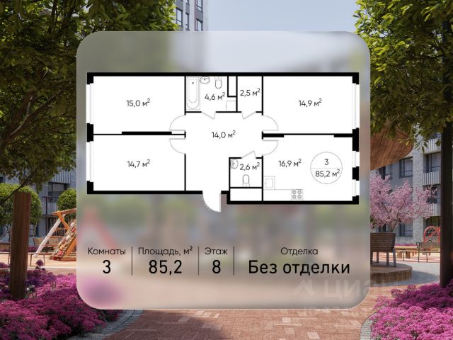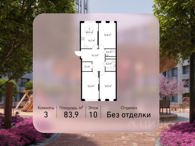 Продается трехкомнатная квартира в городе-парке "Переделкино Ближнее". Общая площадь квартиры - 83,9 кв. м, этаж 10 из 17. Срок сдачи - 1 квартал 2028 года. Тип дома - монолитный. ТОЛЬКО ДО 31 МАРТА выгодные условия на приобретение квартиры в ипотеку или рассрочку. Звоните - и мы подберем оптимальное предложение под ваш запрос! Корпус расположен в 13 фазе строительства и состоит из 8 секций с переменной этажностью 12-17 этажей. Все секции без отделки. Около 13 фазы запланировано строительство многоуровневого паркинга на 300 м/мест. 13 фаза имеет уникальное расположение и находится непосредственно на берегу Федосьинского пруда, который является сердцем города-парка "Переделкино Ближнее". Город-парк "Переделкино Ближнее" расположен в 8 км от МКАД по Боровскому шоссе. ТРАНСПОРТНАЯ ДОСТУПНОСТЬ: - 15 минут пешком до станции МЦД-4 "Мичуринец" - 25 минут пешком до станции метро "Рассказовка" Солнцевской линии - 30 минут до центра Москвы - 2026 г. - открытие трассы Солнцево-Бутово-Варшавское шоссе РАЗВИТАЯ СОЦИАЛЬНАЯ ИНФРАСТРУКТУРА: - 7 детских садов, 3 школы - банки, продуктовые магазины, аптеки, фитнес центры, салоны красоты и пр БЛАГОУСТРОЙСТВО: - дворы без машин - игровые зоны и развивающие детские площадки - зоны для созерцательного и медитативного отдыха - зоны для занятий спортом ОСОБЕННОСТИ АРХИТЕКТУРЫ: - высокие потолки от 3,03 м - безбарьерные входные группы - колясочные в каждой входной группе - кладовые помещения расположены на -1 этаже каждой секции - в каждой секции 2 лифта: 1 пассажирский, 1 грузовой - на фасаде предусмотрены корзины для установки кондиционеров АВТОРСКИЙ ДИЗАЙН: Входные группы выполнены по авторскому дизайну, благодаря панорамному остеклению наполнены естественным светом. В каждой входной группе будет располагаться комфортабельная зона ожидания с возможностью зарядить электронные устройства, почтовые ящики, колясочная, акцентные пуфы и столик.