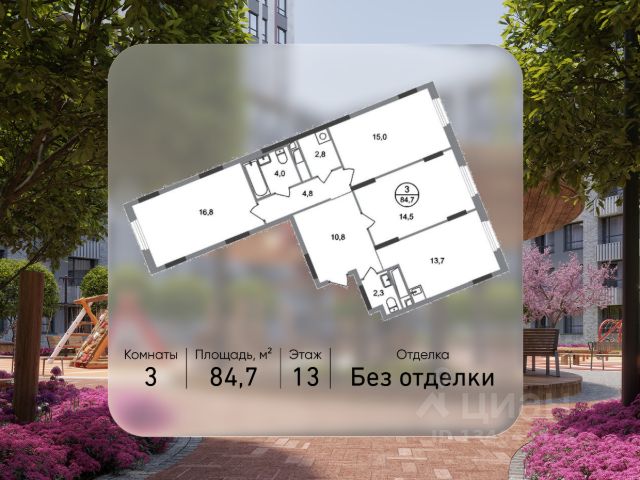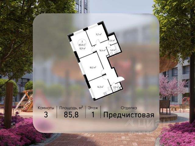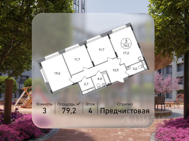 Продается трехкомнатная квартира в городе-парке "Переделкино Ближнее". Общая площадь квартиры - 81,2 кв. м, этаж 5 из 17. Срок сдачи - 3 квартал 2026 года. Тип дома - монолитный. ТОЛЬКО ДО 31 МАРТА выгодные условия на приобретение квартиры в ипотеку или рассрочку. Звоните - и мы подберем оптимальное предложение под ваш запрос! Город-парк "Переделкино Ближнее" расположен в 8 км от МКАД по Боровскому шоссе. ТРАНСПОРТНАЯ ДОСТУПНОСТЬ: - 10 минут пешком до МЦД-4 "Мичуринец" - 15 минут пешком до станции метро "Рассказовка" Солнцевской линии - 10 минут на машине до станции метро "Филатов Луг" Сокольнической линии - 30 минут до центра Москвы - Прямой выезд на дорогу Солнцево-Бутово-Варшавское шоссе, минуя жилую застройку всего ЖК БЛАГОУСТРОЙСТВО: 18 фаза строительства уникальна своим расположением - в шаговой доступности парк на Лукинской улицы, река Алёшинка. На территории 18 фазы строительства будут построены 2 монолитных жилых корпуса повышенного комфорта разной этажности 7, 17 этажей. А также многоуровневый паркинг на 300 м/мест. Вход в жилую часть корпусов каждой секции осуществляется с двух сторон - с наружного контура жилого дома и со стороны дворового пространства, предусмотрен безбарьерный доступ. ВНУТРЕННЯЯ ИНФРАСТРУКТУРА: В рамках данной фазы, для жителей предусмотрено создание пространства, свободного от машин - благоустроенные огороженные дворы с современными детскими и спортивными площадками, разделенными на зоны по возрастам. На территории проекта есть все необходимые объекты социальной и бытовой инфраструктуры: детские сады, школы, магазины, паркинги, аптеки, поликлиники, пожарная часть и др. АВТОРСКИЙ ДИЗАЙН: Современный монолитный дом переменной этажности 7 и 17 этажей. На фасаде предусмотрены корзины для установки кондиционеров. Входные группы домов выполнены по авторскому дизайну. Колясочные располагаются при входе, велопарковка на -1 этаже.