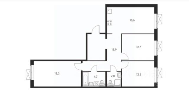 Общая площадь 63 кв.м., жилая площадь 45,4 кв.м. (20 кв.м. + 15 кв.м. + 10,4 кв.м.) зал проходной, кухня площадью 6,5 кв. м., сан/узел совместный, балкон застеклён. Окна ПВХ, выходят на обе стороны дома. Высота потолков — 2,7 метра.