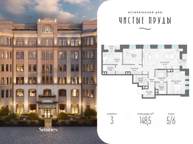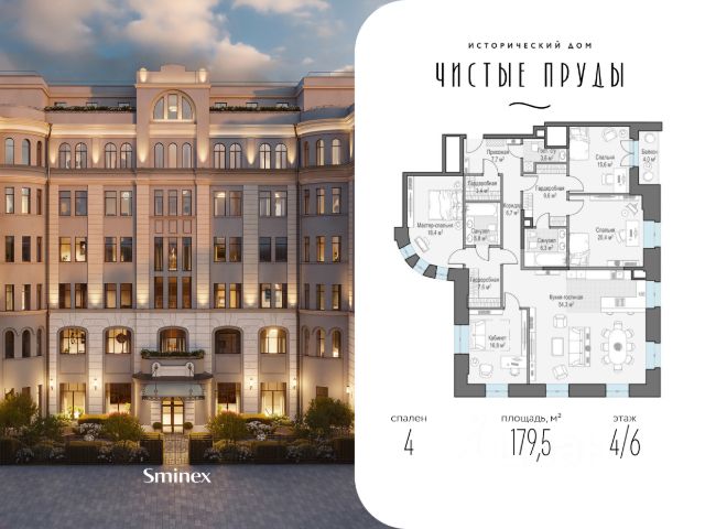 Роскошный пентхаус общей площадью 375,8 кв. м. расположен на 6-м этаже. Арочные окна, элегантный сферический эркер и высокие 4-метровые потолки создают уникальное пространство, наполненное светом. Продуманная и изысканная планировка, в которой разделены общие и приватные зоны позволит всем членам семьи совмещать свои сценарии жизни. Окна пентхауса выходят на все стороны света, дровяной камин в гостиной наполнит зимние вечера теплом и уютом, подчеркнет престиж и статус семьи. Потрескивание дров создает спокойную и романтичную атмосферу в доме. Расположенная на крыше личная терраса площадью 188 кв. м. с неповторимыми видами делает пентхаус идеальным местом для комфортной и по-настоящему роскошной жизни. "Чистые Пруды" - исторический дом на 34 квартиры в уникальном атмосферном районе Москвы, в 50 метрах от Чистых прудов. Это одно из самых романтичных и престижных мест столицы. Дом расположен в глубине квартала, в окружении тихих переулков - в полной тишине и приватности старого московского двора. "Чистые Пруды" - деликатно реконструированный исторический дом с изысканной архитектурой начала прошлого века авторства барона Отто фон Дессина. У дома максимально сохранены архитектурные формы 1915 года и подлинные кирпичные стены. В "Чистых Прудах" создана небывалая для таких домов инфраструктура. Только для жителей на месте каретного двора XIX века расположен Clubhouse с пространствами для общения соседей, здорового образа жизни и развития детей. В Lounge выделены каминная, патио, зона для проведения мастер-классов и настольных игр. Работает бесплатный фитнес по стандарту Fit Lab с зонами кардио, силовых тренажёров, свободных весов и функционального тренинга. Для детей в Clubhouse создана игровая комната по стандарту Kid`s Lab. Есть свой всесезонный двор-сад. В доме представлены роскошные квартиры с дровяными каминами и высокими потолками от 3,9 до 5,4 м. О жителях и доме заботится Служба комфорта Smineх, которая предлагает сервис уровня 5-звёздочных отелей и сохраняет изначальный облик и концепцию дома. Девелопер проекта - Sminex. Компания обладает 23-летним опытом строительства жилой и коммерческой недвижимости. В 2022 году Sminex приобрёл девелопера "Интеко", в 2024 году - "Инград". Сегодня Sminex - девелопер N1 элитной и премиальной недвижимости, который создаёт комфортную и престижную среду.