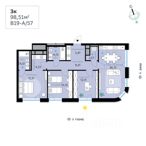В продаже — трехкомнатная квартира, общей площадью 107,88 кв. м. Квартира расположена на шестом этаже десятиэтажного корпуса Балансд в квартале В16 нового района СберСити, который строит Сбер. Архитектуру квартала В16 создало итальянское бюро ARCHEA middle east: каждый дом узнаваем, но вместе они складываются в спокойный, цельный ансамбль. В облицовке сочетаются тёплые оттенки кирпича и металла, за счёт игры фактур фасады выглядят живыми и меняются в разное время дня. Строгая геометрия поддерживает ритм города, а мягкая природная палитра помогает чувствовать себя дома, а не в деловом квартале. Дом возводится по технологии монолитного строительства. Квартиры передаются без отделки, что позволяет будущим владельцам реализовать собственные дизайнерские решения и индивидуальные планировки. В квартирах предустановлена система "умный дом", объединяющая управление квартирой, домом и прилегающей территорией. Можно регулировать климат и освещение голосом или через смартфон. Квартал состоит из девяти домов средней этажности — от 7 до 10 этажей. Корпуса формируют большой внутренний двор площадью два гектара. Во дворе предусмотрены зоны для разных сценариев: просторные площадки для детей, пространства для активного досуга и спорта, тихие места для отдыха и спокойного времени, а также удобные рабочие места под открытым небом. Здесь легко найти своё — для жизни, здоровья и занятий тем, что действительно нравится. В доме предусмотрены: уютное лобби с зоной ожидания, лапомойка, санузел, помещение для хранения колясок и велосипедов, подземный паркинг. СберСити — это новый жилой и деловой район на западе Москвы, в одном из самых экологически чистых и престижных мест столицы. Это первая в России и крупнейшая в мире инновационная городская среда, созданная по международным стандартам зелёного проектирования. Здесь внедряются решения в области энергоснабжения, вакуумного мусороудаления, тестирования зелёных технологий, а в дальнейшем — системы искусственного интеллекта для управления домами и городской инфраструктурой. Строительство проекта началось в 2021 году, заселение первых корпусов — с лета 2024-го. Общая площадь территории — 461 га, из них более 2,5 млн кв. м жилья и около 833 тыс. кв. м офисных пространств. Будет построено 7 школ, 13 детских садов и 2 поликлиники. В СберСити будут жить 65 тыс. человек и работать 70 тыс. Развитием территории занимается АО "Рублёво-Архангельское", входящее в группу Сбер. СберСити — место, где хочется жить, работать и растить детей. Переезжайте в СберСити!