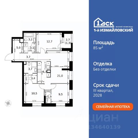 Просторная 2-комнатная квартира для молодой семьи. Общая площадь - 76.2 м2, удобная планировка, кухня-гостиная 31.3 м2. Панорамные виды из окон на две стороны - на национальный парк "Лосиный остров" и благоустроенный внутренний двор. Условия покупки: - Скидка при полной оплате - 10% - Ипотека от 3,5% на весь срок или 0,11% на первый год - Рассрочка без процентов - Trade-in с проживанием на время строительства дома НАЗАР - шесть домов бизнес-класса высотой 24-43 этажа. Проект расположен рядом с национальным парком "Лосиный остров" и парком "Сокольники". В продаже квартиры с мастер-спальнями, кухнями-гостиными, открытыми террасами, просторными кладовыми и ванными с окном. Форматы - от светлых студий 21,6 м2 до семейных 4-комнатных 125,5 м2. Часть лотов - с предчистовой отделкой White Box. Транспортная доступность: - Метро "Бульвар Рокоссовского" и МЦК - 2 мин. пешком - Северо-Восточная хорда - 3 мин. на автомобиле - Третье транспортное кольцо - 15 мин. на автомобиле - Садовое кольцо - 18 мин. на автомобиле Инфраструктура: В составе проекта появится собственный детский сад и торгово-развлекательный центр с акцентом на шопинг и досуг. На первых этажах домов откроются кафе, пекарни, магазины и службы сервиса. В районе Богородское находятся престижные школы, медцентры, магазины и спортивные клубы.