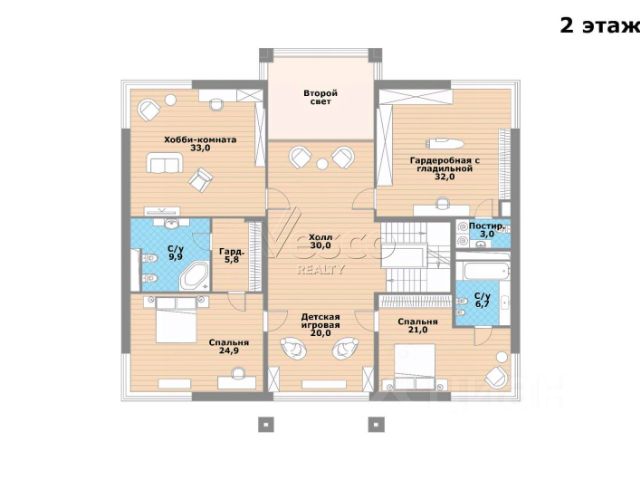 детская 1 (18,4) с с/у (4,2) и гардеробной (6,3),