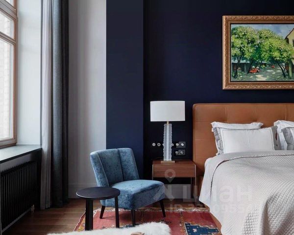 136,3 м.кв, с высотой потолков 4 метра и эксклюзивным дизайнерским ремонтом. Квартира на расположена 2-м этаже дома, рядом с каминным залом. Окна гостиной и спальни выходят на тихую улицу Малая Якиманка.