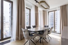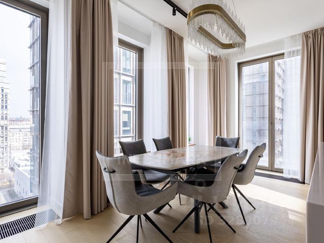 Продаётся 6 - комнатный пентхаус в готовом доме (Корпус 2), общей площадью 434.4 кв.м., на 21 этаже. О жилом комплексе Жилой квартал Лаки - это переосмысление и регенерация общественно-делового кластера площадью более 4.5 гектаров в центре Москвы. О застройщике Девелопер проекта Веспер специализируется в премиальном сегменте клубной жилой недвижимости. Портфель компании включает 22 проекта в Москве и странах Европы. Актуальные архитектурные проекты, индивидуальный дизайн, передовые технологии, качественные материалы и лучшие мировые практики воплощены в каждом доме компании. Расположение и транспортная доступность Квартал расположен на пересечении улиц 2-ая Звенигородская и Костикова, в 200 метрах от метро "Улица 1905 года". В непосредственной близости от парков, Москвы-реки, Сити и Садового кольца формируется идеальная среда для семейного проживания в мегаполисе. Архитектура Визуально квартал разделен на две части: верхний город с новыми высотными жилыми домами и нижний город с общественным пространством для инфраструктуры, где располагается новый социокультурный кластер площадью около 10 000 кв. м. Верхний город состоит из восьми жилых домов: семь 21-этажных башен и одно здание высотой 15 этажей. В восьми новых домах расположены 618 квартир. На каждом этаже 3-4 квартиры, большая часть которых имеет ориентацию на 2-3 стороны света. Из панорамных окон открываются виды на набережную Москва-реки, Сити и близлежащие парки. Знаковая архитектура, продуманные планировочные решения, изысканная отделка, инновационные инженерные решения воплощены в квартале Лаки. Инфраструктура В квартале представлена инфраструктура для всей семьи: парки и скверы, билингвальный детский сад Ля Березка, собственный 600 м. игровой парк для детей, фитнес с подогреваемым бассейном на крыше, рестораны, кафе и магазины органических продуктов. В шаговой доступности от квартала расположены лучшие рейтинговые школы.