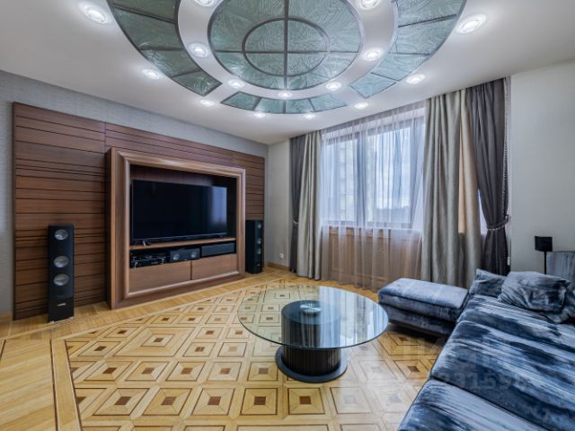 Эксклюзивный 2-х этажный пентхаус общей площадью 340 м² с рекордно высокими потолками (3.7-4 м), расположенный на самой пиковой точке Воробьёвых гор, в легендарном сталинском доме с башнями.