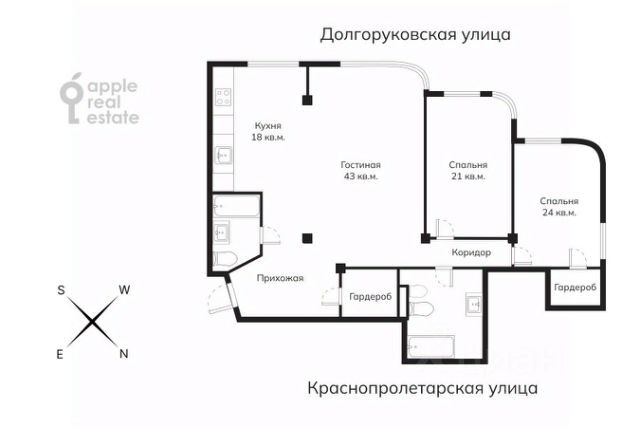 Планировка: 3 изолированные спальни, просторная кухня-гостиная, 2 санузла (один в мастер-спальне с гардеробной) , большая застекленная лоджия.