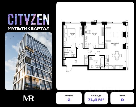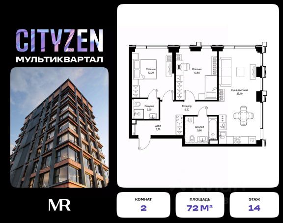 Продается 2-комнатная квартира от застройщика в жилом мультиквартале CITYZEN на 9-м этаже в корпусе #2 урбан-блока PARUS. Общая площадь лота составляет 71.80 м² В лобби корпуса #2 урбан-блока PARUS представлены: 1. Small-лобби с зоной отдыха 2. Почта 3. Колясочная 4. Лапомойка 5. Лифтовой холл 6. Санузел 7. Помещение уборочного инвентаря CITYZEN — это большой город в миниатюре. Инфраструктура мультиквартала организована по принципу шаговой доступности от подъезда до любой нужной точки: супермаркета, кофейни, салона красоты, фитнес-центра и др. В домах представлены лобби с атмосферой премиального резорта, дизайн которых вдохновлен французскими интерьерами 1960-х годов. Концепция благоустройства территории мультиквартала предусматривает большое количество вечнозеленых растений, что создает ощущение максимальной близости к природе. Жителей квартала ждут места для отдыха, игр, занятий спортом и прогулок с домашними питомцами. В приватном дворе с собственным садом предусмотрена зеленая комьюнити-гостиная для дружеского отдыха и общения, одна из стен которой подходит для кинопроекций, а также зеленый рабочий кабинет в саду (бизнес-гардена), оборудованный wi-fi станцией и usb-разъёмами для зарядки устройств. Маленьких жителей ждут авторские игровые площадки для разных возрастных групп (от 0 до 12 лет). Начало строительства - 1 квартал 2024 года. Окончание строительства - 3 квартал 2027 года.Компания MR предлагает своим клиентам специальные условия приобретения квартир в рамках программ ипотечного кредитования от банков-партнеров.